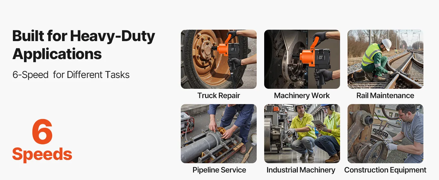 VEVOR 1-Inch Air Impact Wrench, Twin Hammer Air Impact Gun, Up to 1626N.m Reverse Torque, 4600RPM 6-Speed Pneumatic Wrench for Heavy Duty Auto Repairs and Maintenance