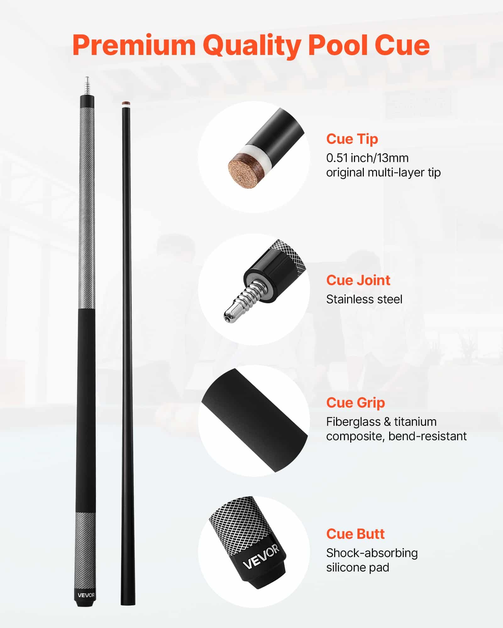 VEVOR Pool Cue, 1 Piece Pool Stick, 1473.2mm & 595g Fiberglass Titanium Composite Billiard Pools Cue Stick with Multi-Layer Tip, Cues Sticks for Professional Pool Table, Bar, Home Pool Games, Office