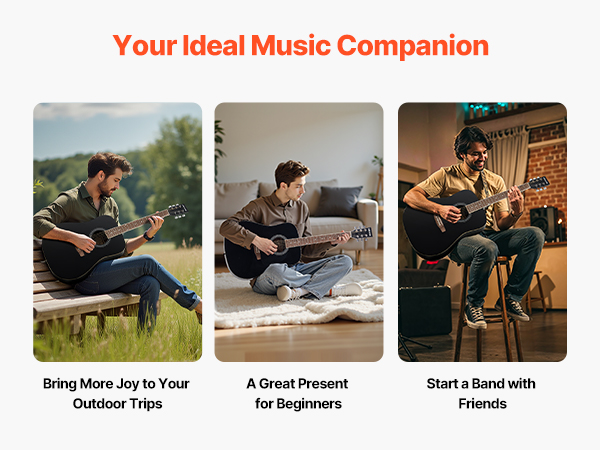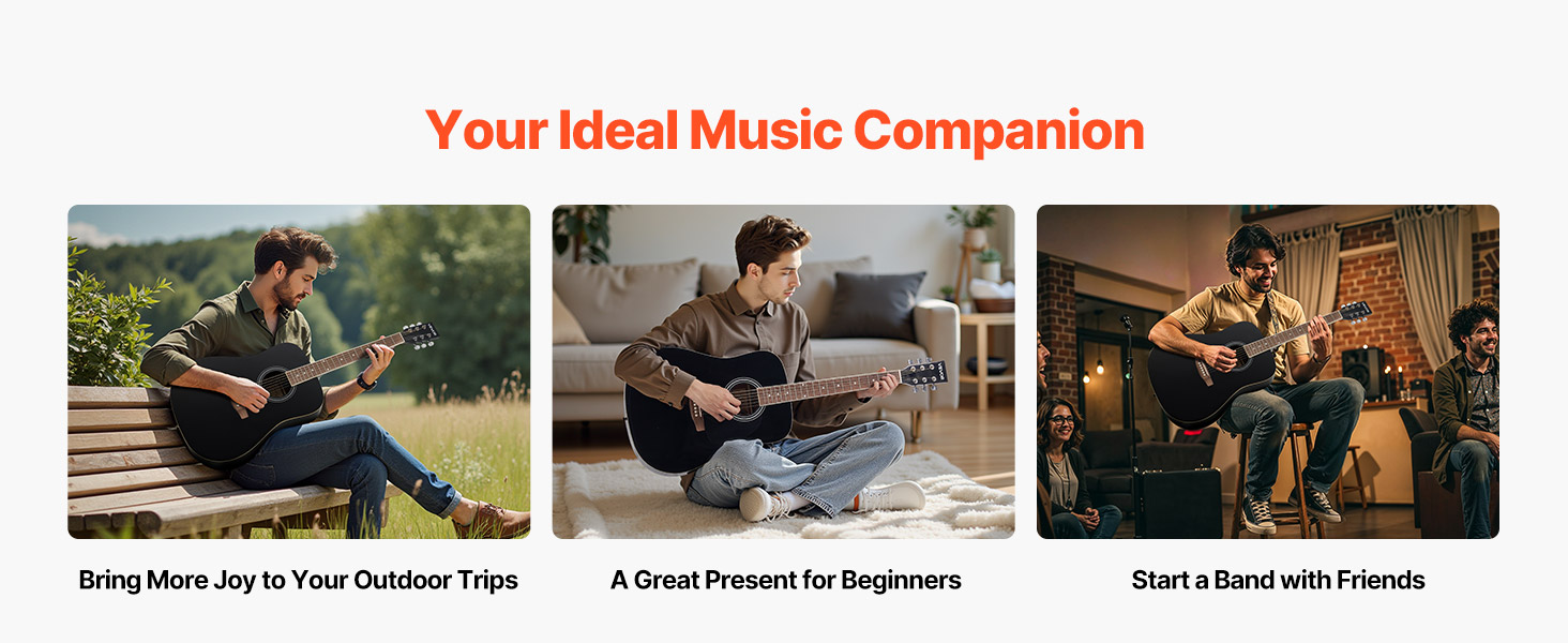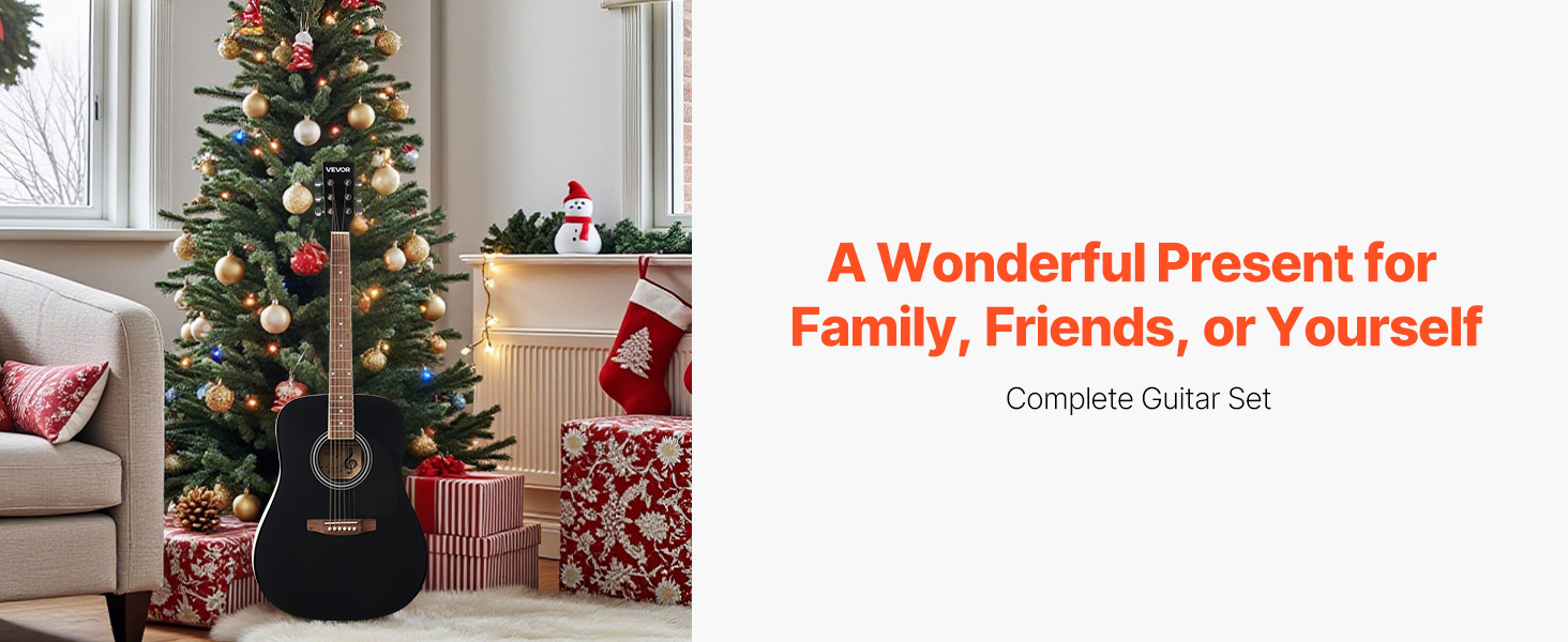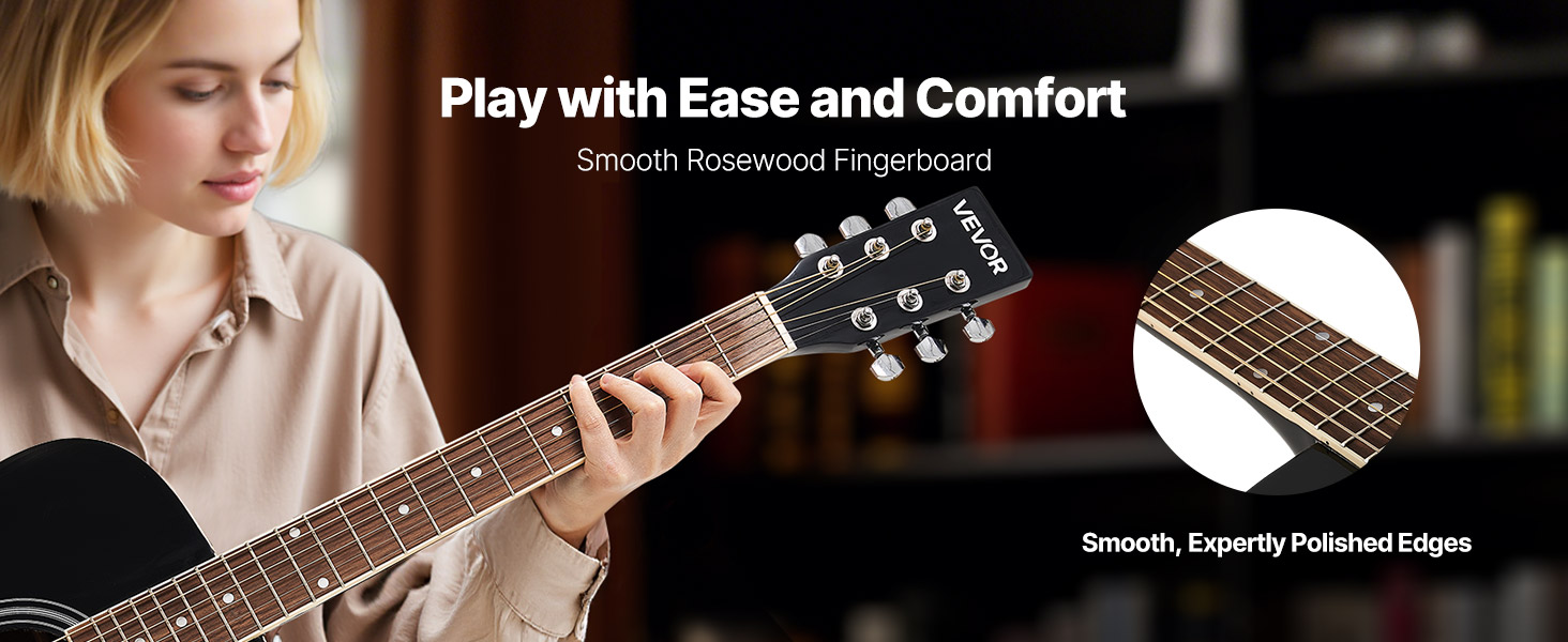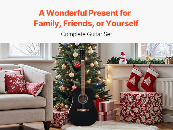 VEVOR 41 in / 1041.4 mm Dreadnought Acoustic Guitar Beginner Bundle for Adult Taller Black