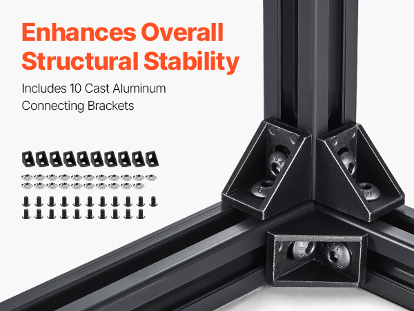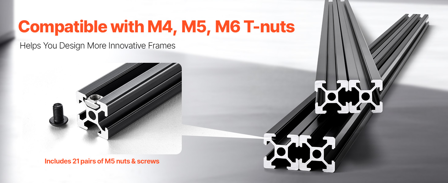 VEVOR 10PCS 59 in (1500 mm) T Slot 2020 Aluminum Extrusion Profile, European Standard Anodized Linear Rail, High-Strength Extruded Aluminum Rail for 3D Printer, CNC Machine DIY, Laser Engraving, Black