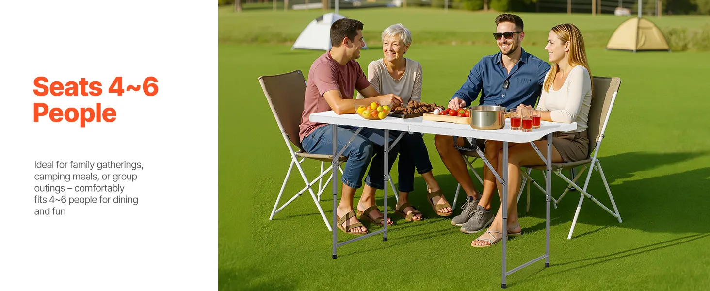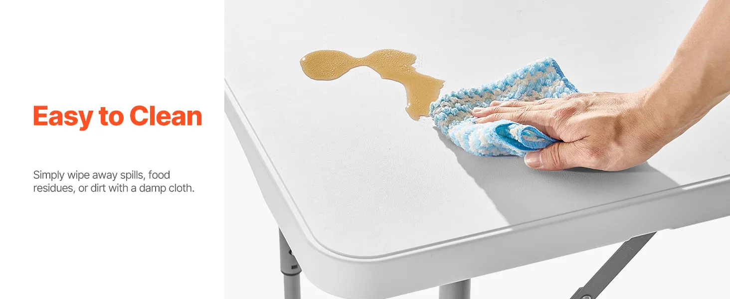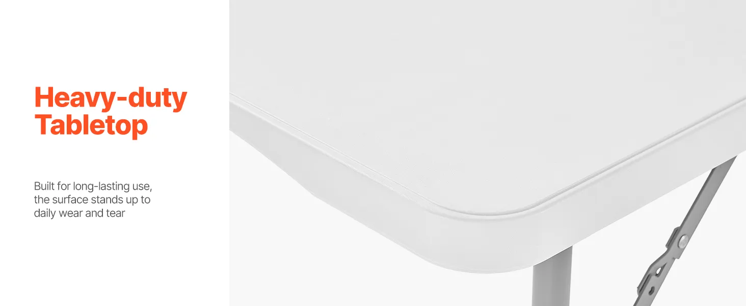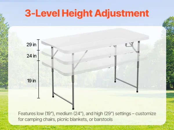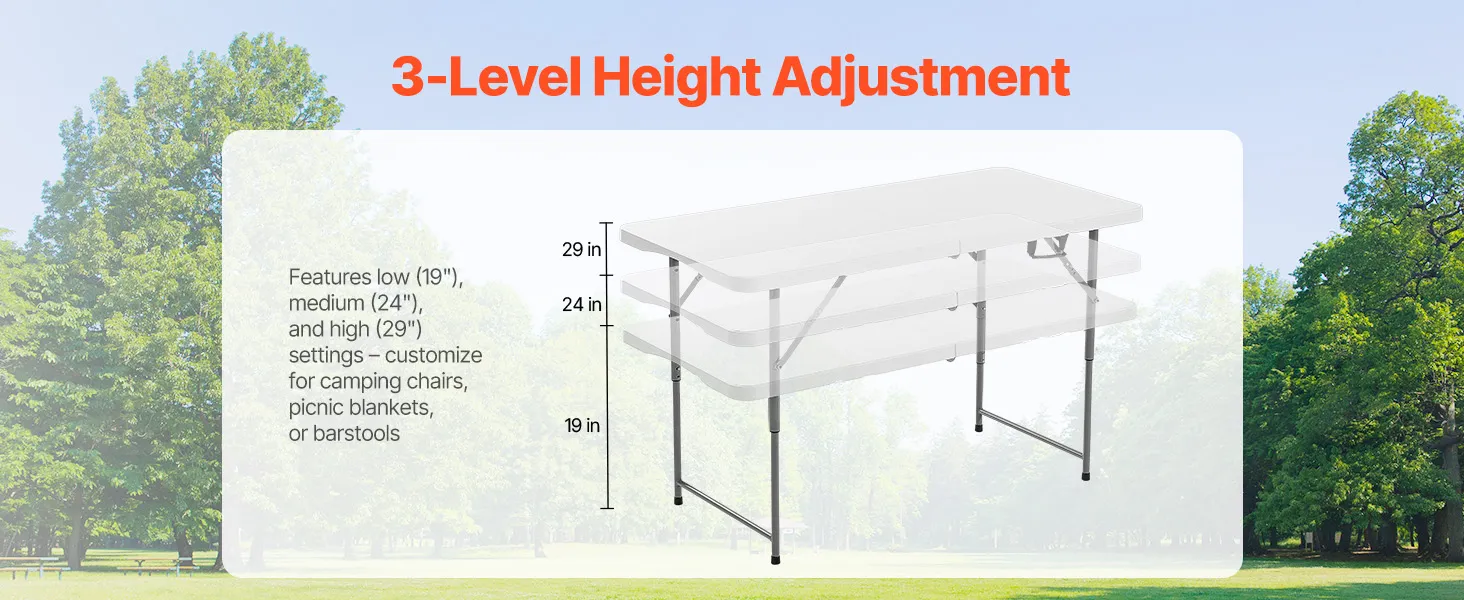 VEVOR Folding Table, 4 Ft Heavy Duty Portable Fold-in-Half Utility Table, Indoor Outdoor Plastic Rectangle Table with Adjustable Height and Built in Handle, for Party, Dining, Picnic, Camping, White
