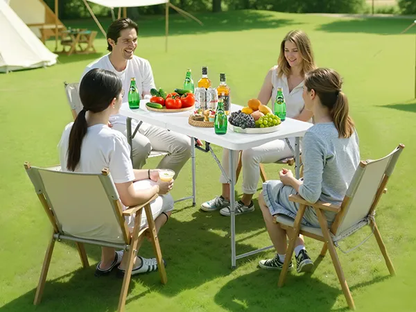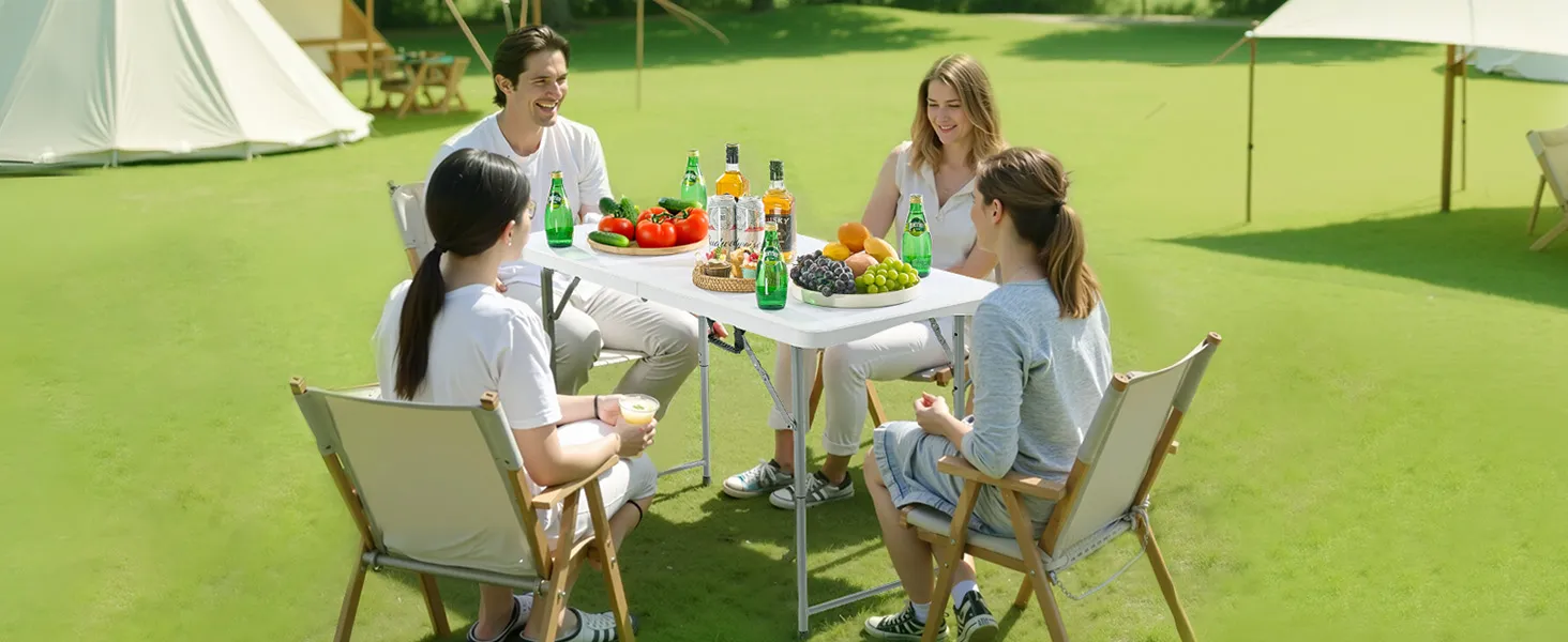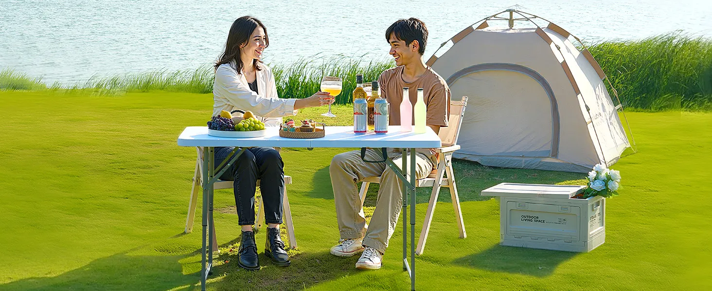 Šis saliekamais galds ir piemērots lietošanai gan iekštelpās, gan ārā, apmierinot jūsu dažādās vajadzības.