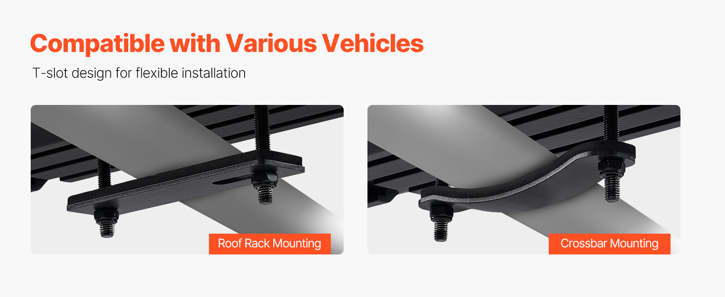 • Elastīgs montāžas dizains: T veida rievas dizains ūdens tvertnē ļauj droši uzstādīt uz jumta bagāžniekiem, kravas stieņiem, bagāžniekiem vai šķērsstieņiem. Komplektā ietilpst gan šķērsstieņu, gan jumta bagāžnieka montāžas plāksnes papildu stabilitātei.