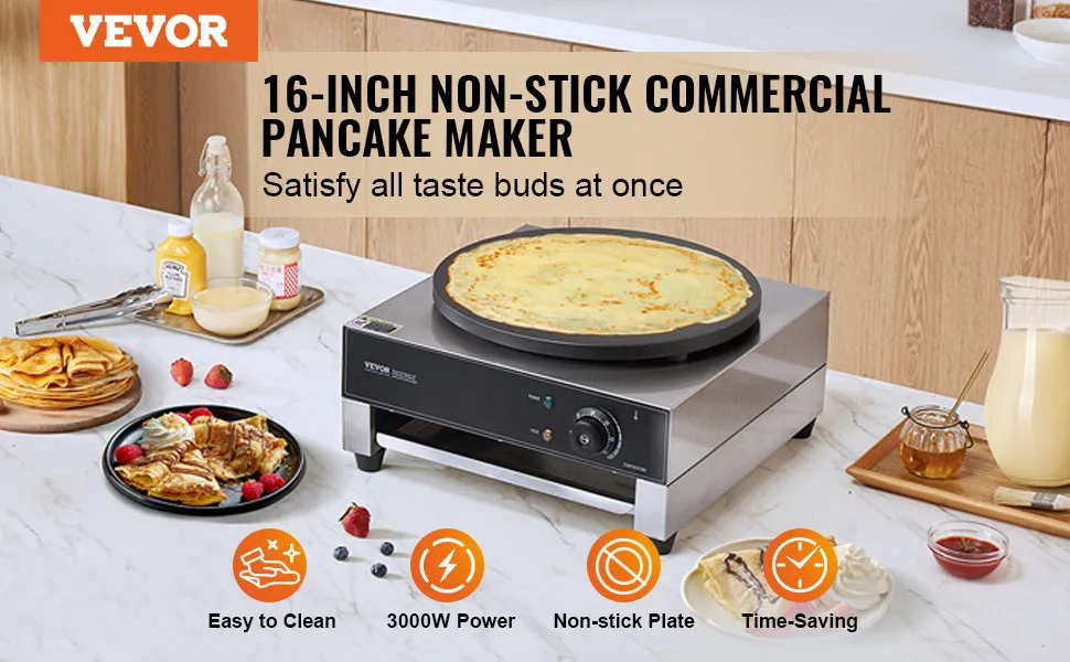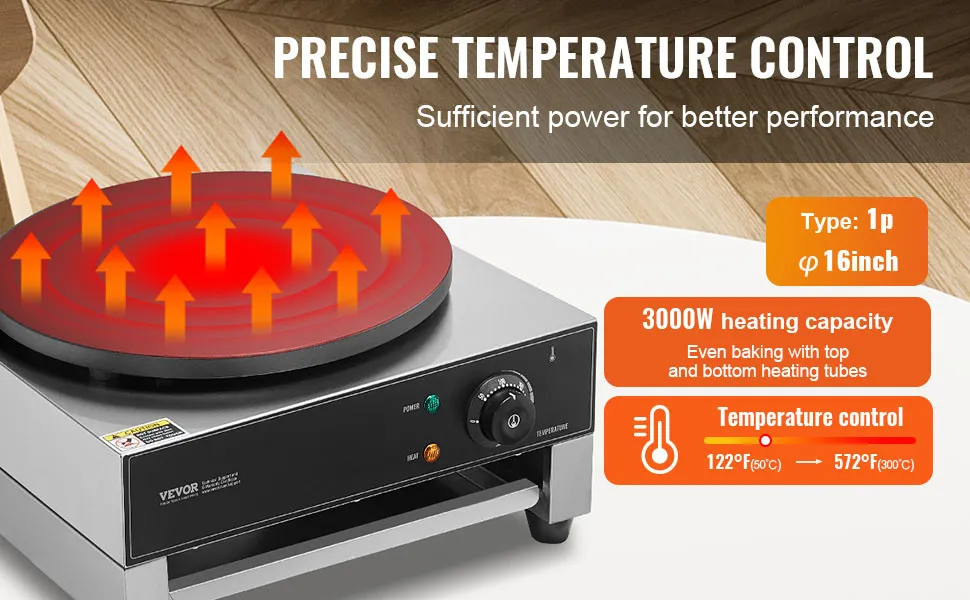VEVOR 1700W elektriskā 400mm pankūku panna – komerciāla neuzlīpoša plīts ar temperatūras kontroli
