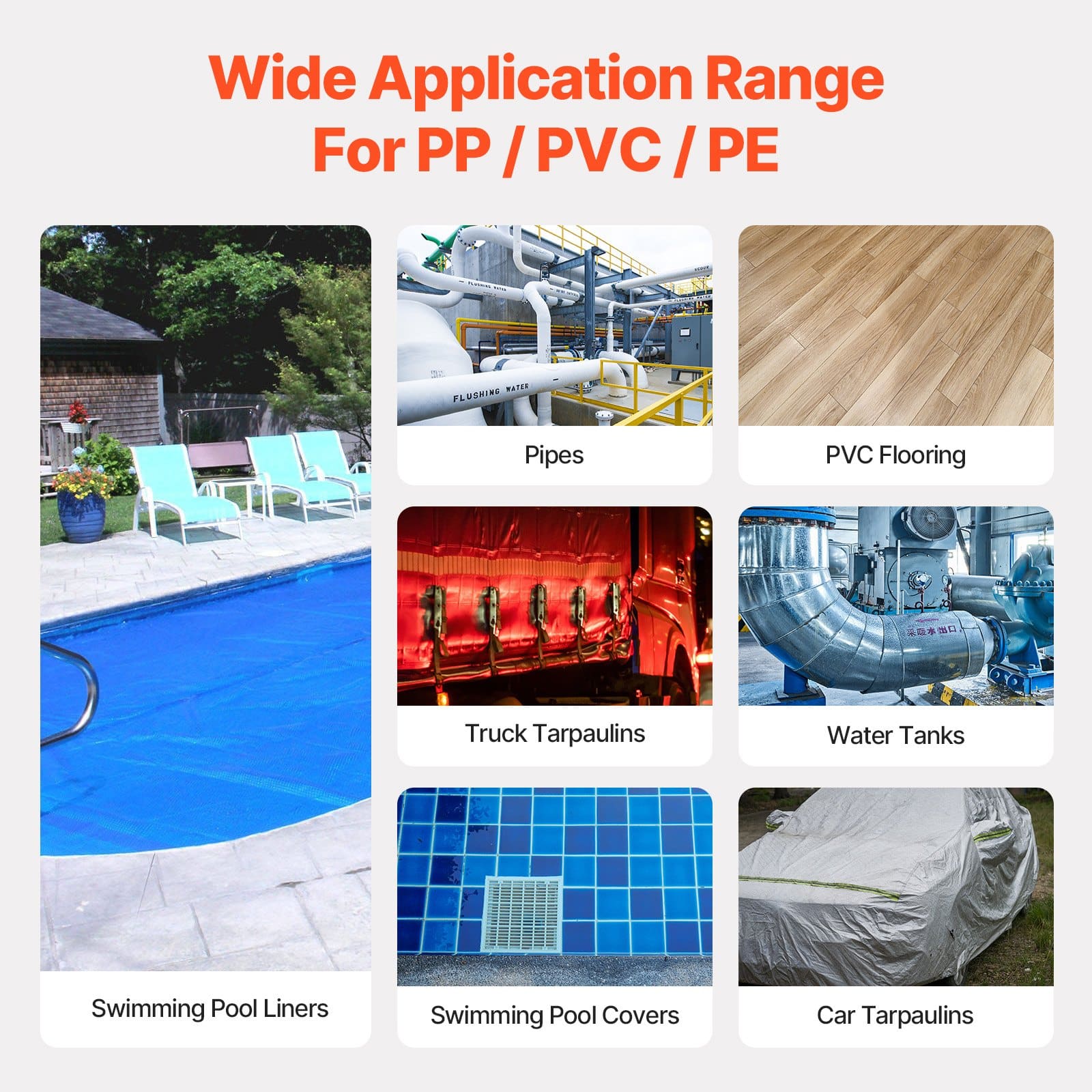 VEVOR plastmasas karstā gaisa metināšanas sildīšanas pistolei ir 4 sprauslu izmēri — ideāli piemēroti gan precīzai PVC cauruļu metināšanai, gan liela mēroga darbiem, piemēram, brezenta remontam. Viegli pārslēdziet sprauslas, lai tiktu galā ar jebkuru uzdevumu.