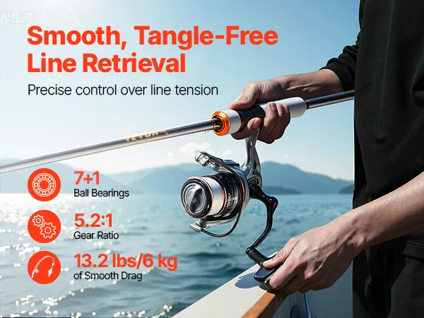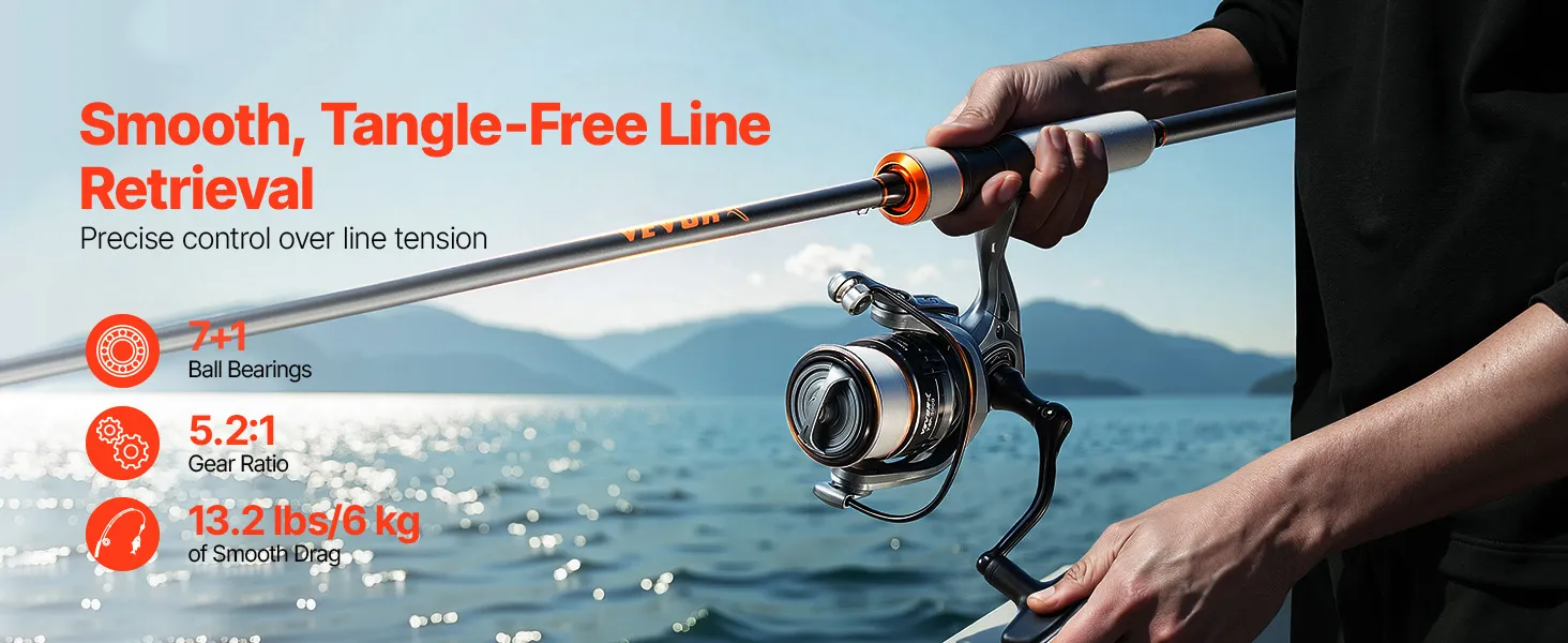 With its versatile design, this VEVOR spinning reel fishing pole is ideal for any situation. It's compact enough to carry on short trips, fits in your travel case for long vacations, and can be stored in your car for emergency fishing outings. A great choice to share your passion for fishing.