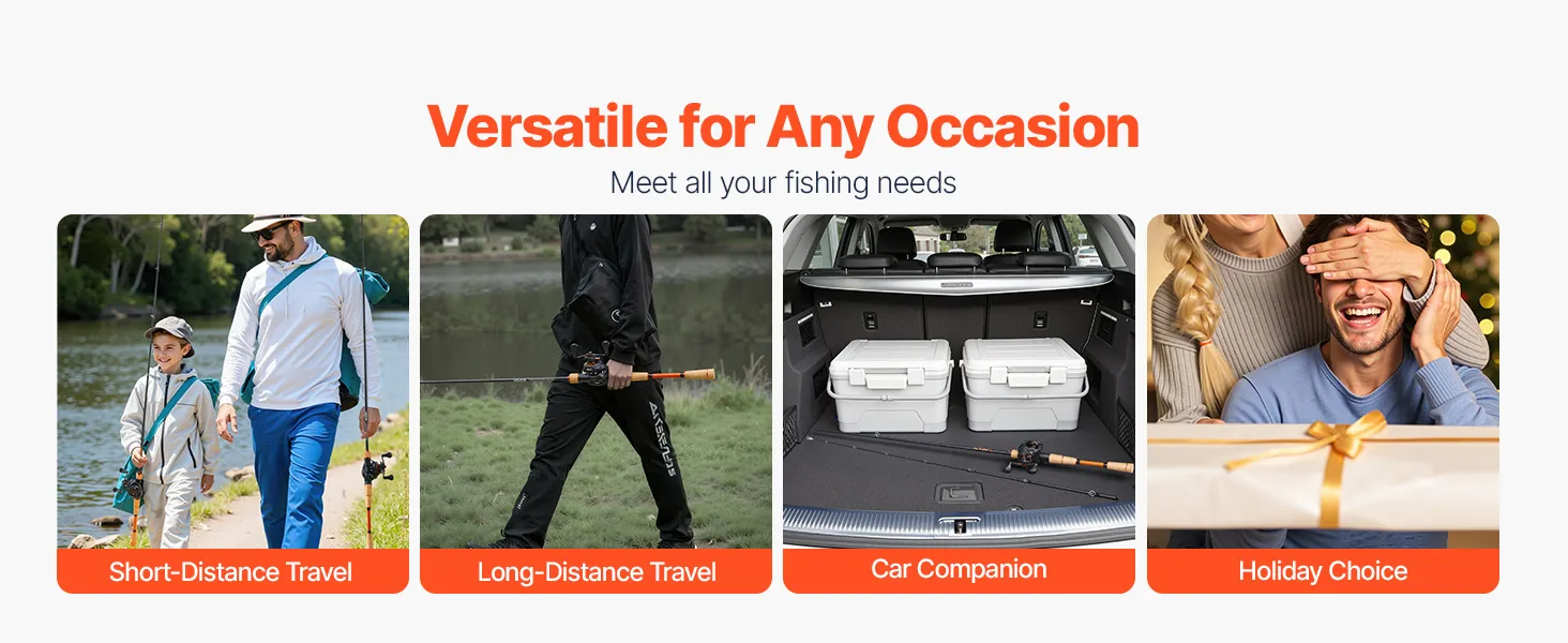 Our bass fishing pole is designed for versatility, ideal for various scenarios. Whether it's a quick getaway, easily packed into your travel bag, or stored in your car's trunk for spontaneous trips, it's ready whenever you are. It is also an ideal choice for sharing your love for fishing.