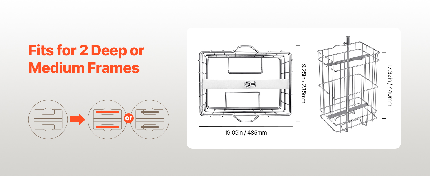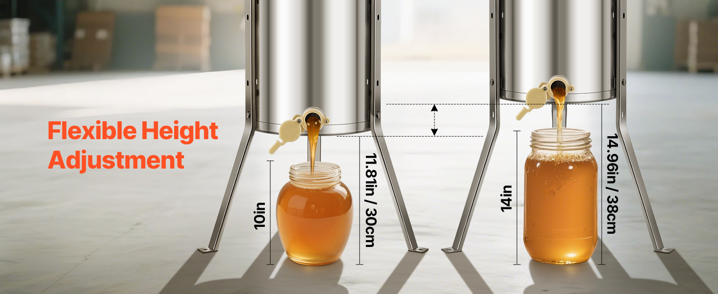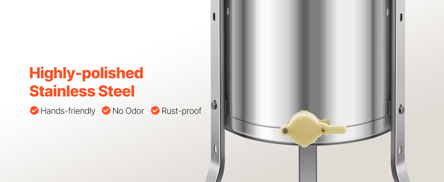 Šai divu rāmju medus sviedei ir regulējams augstums un izturīgs nerūsējošā tērauda rāmis stabilai darbībai. Ar visiem nepieciešamajiem piederumiem to ir viegli lietot, tā ir piemērota dziļiem, vidējiem un sekliem rāmjiem, un tā piedāvā vienmērīgu medus sviešanu ar regulējamu ātrumu optimālai efektivitātei.