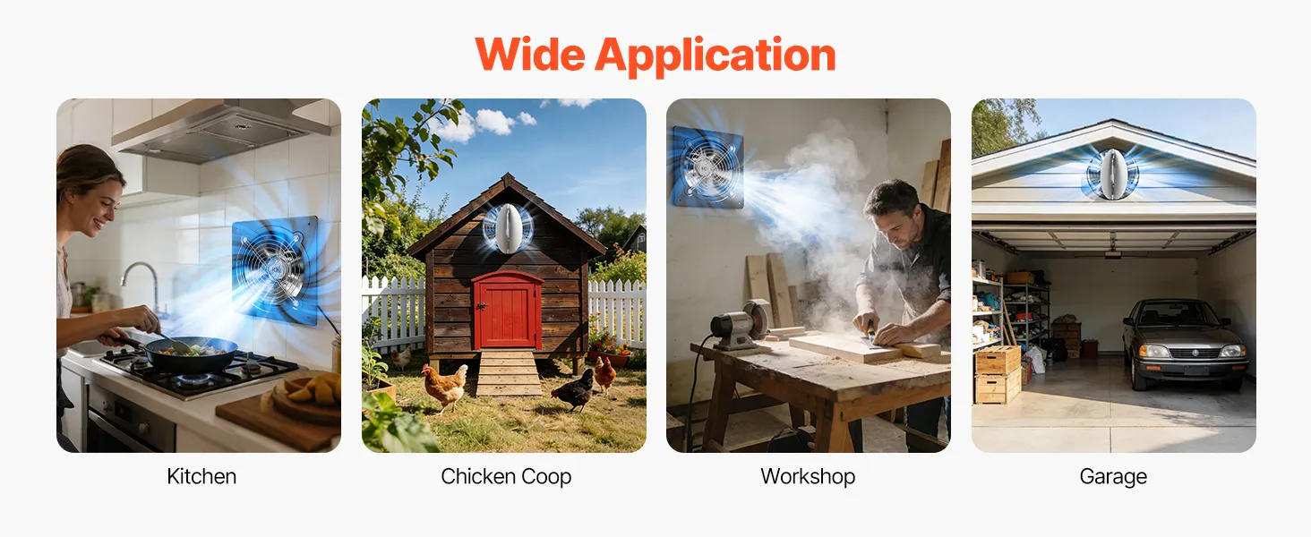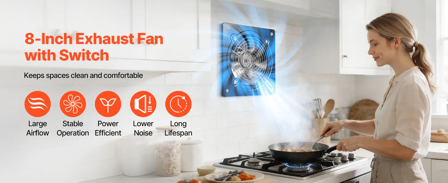 • High Airflow Performance: This 20.3 cm / 8-inch exhaust fan delivers strong airflow for fast smoke and air circulation, keeping your kitchen or workshop fresh and comfortable during daily use