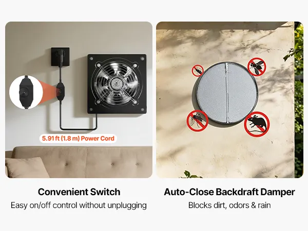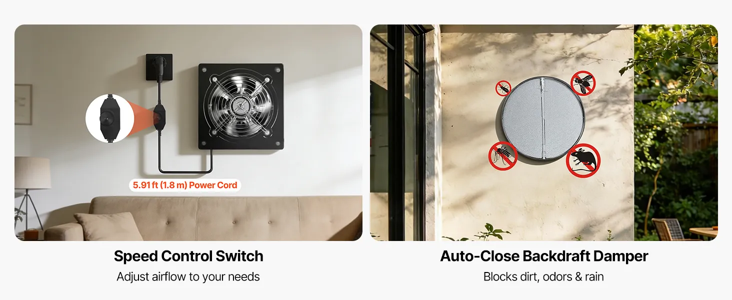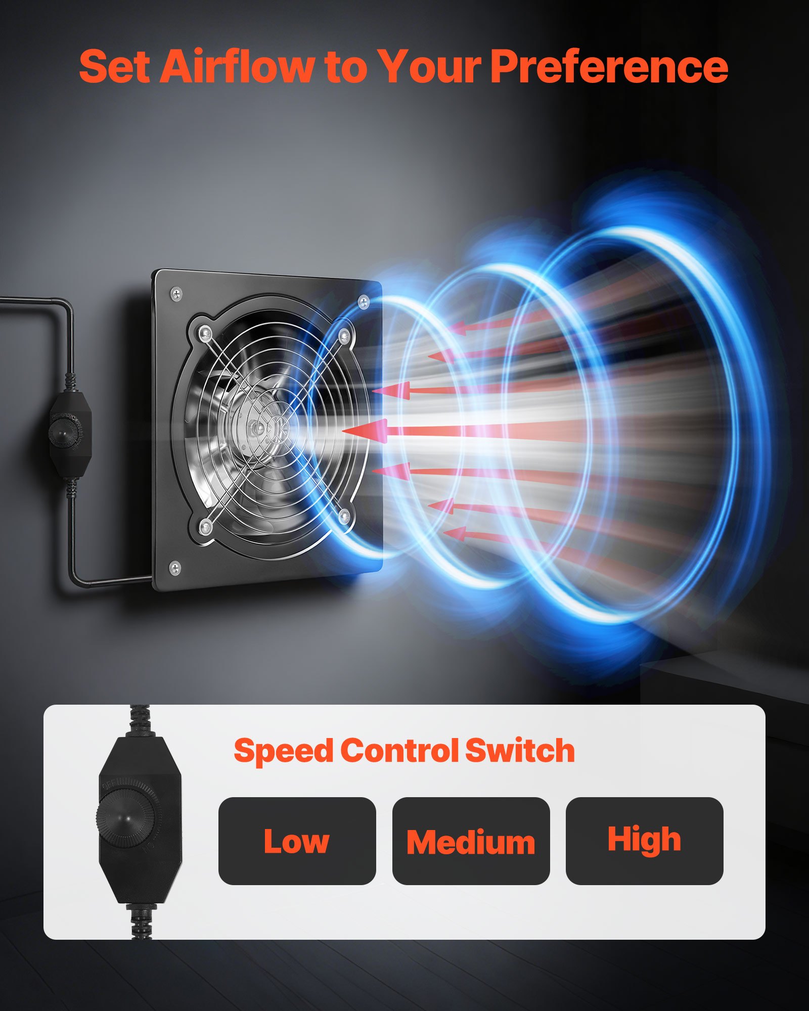 • Adjustable Fan Speed: The built-in speed control switch lets you adjust the fan airflow as needed, high speed for quick ventilation and low speed for quieter operation, ensuring comfort and flexibility