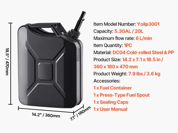 - 14,2 x 7,1 x 20,1 collas / 360 x 180 x 510 mm