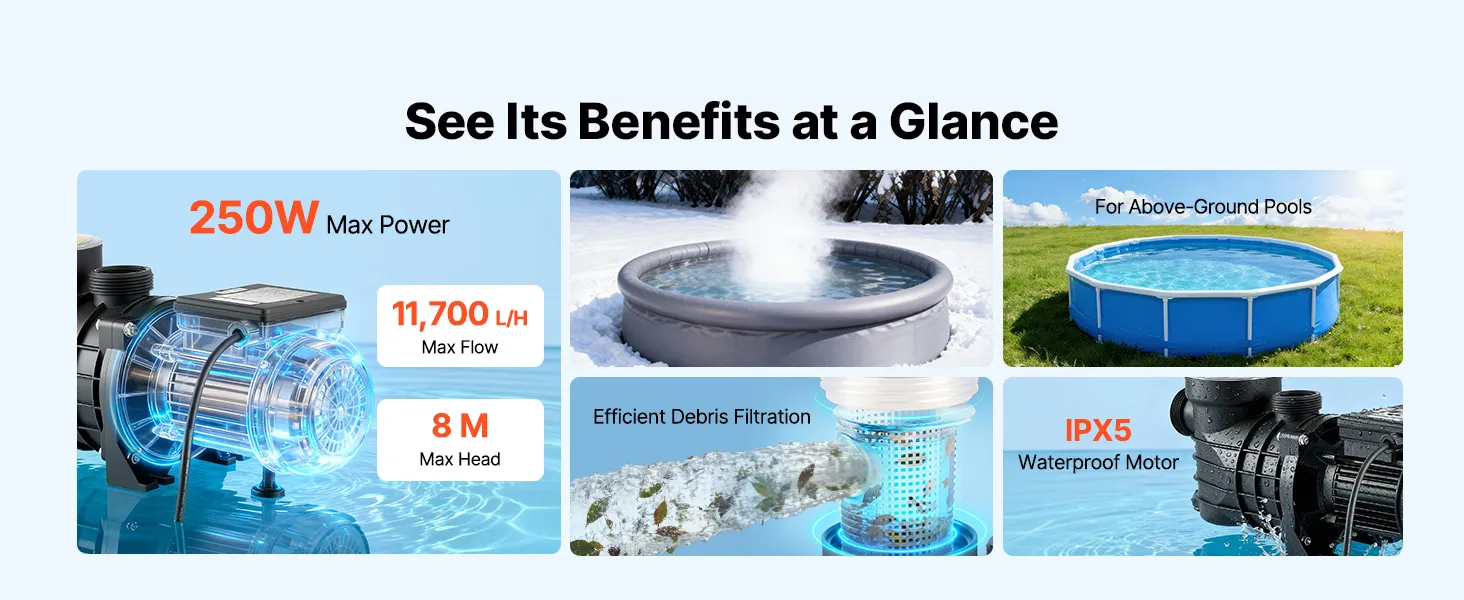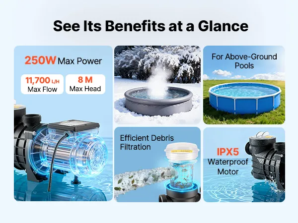 250W Single-Speed Pool Pump, Pool Cleaning Made Easy
