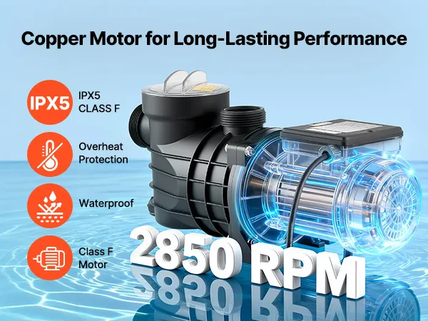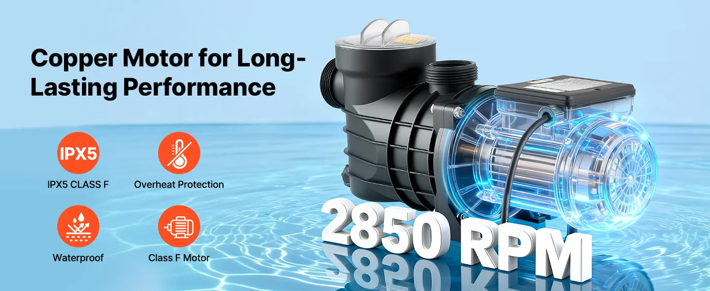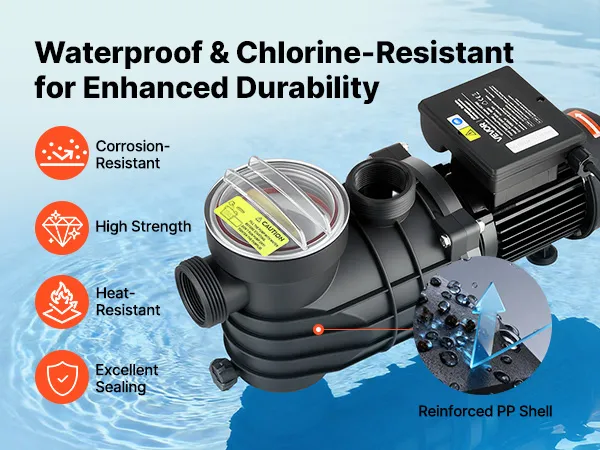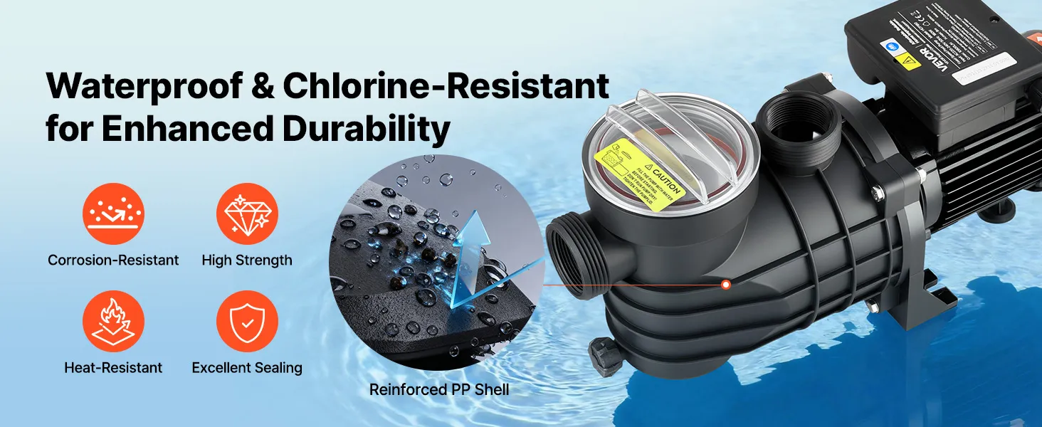 Crafted from durable, corrosion-resistant material, our pool filter pump combines strength, lightweight design, and long-lasting performance to withstand harsh pool environments.