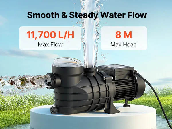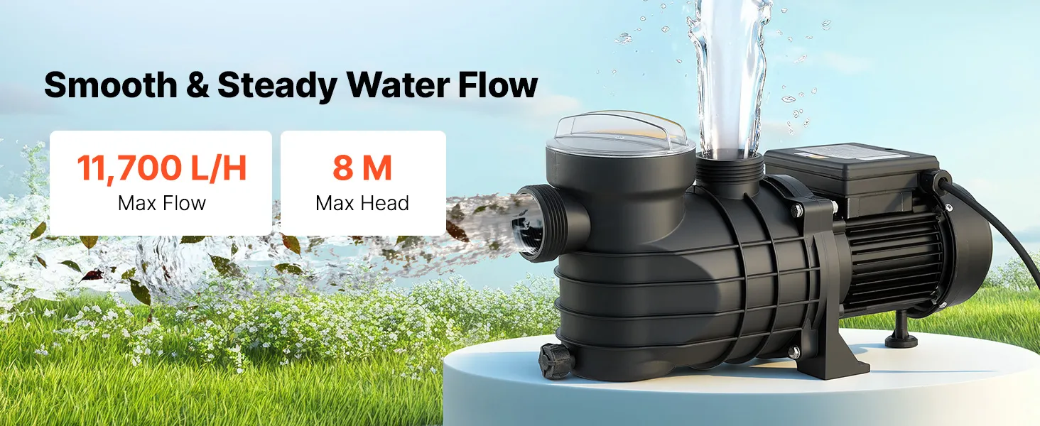 Designed for efficient water circulation and reliable pool care, this pump delivers a max flow of 11,700 L/H and an 8 m max head. Built with an IPX5 waterproof and Class F copper motor, it runs smoothly and ensures long-term durability. The filter basket helps pre-filter debris to reduce clogging.