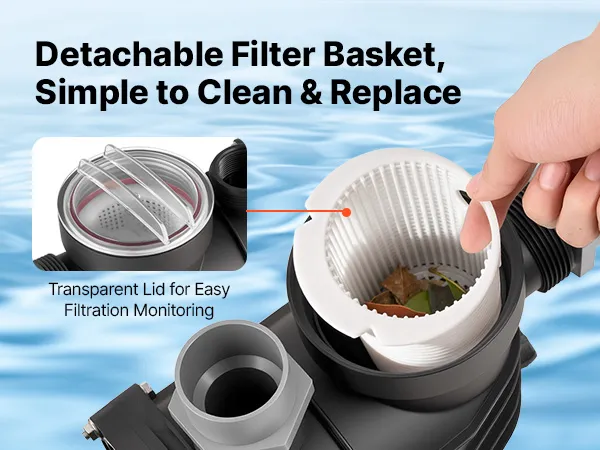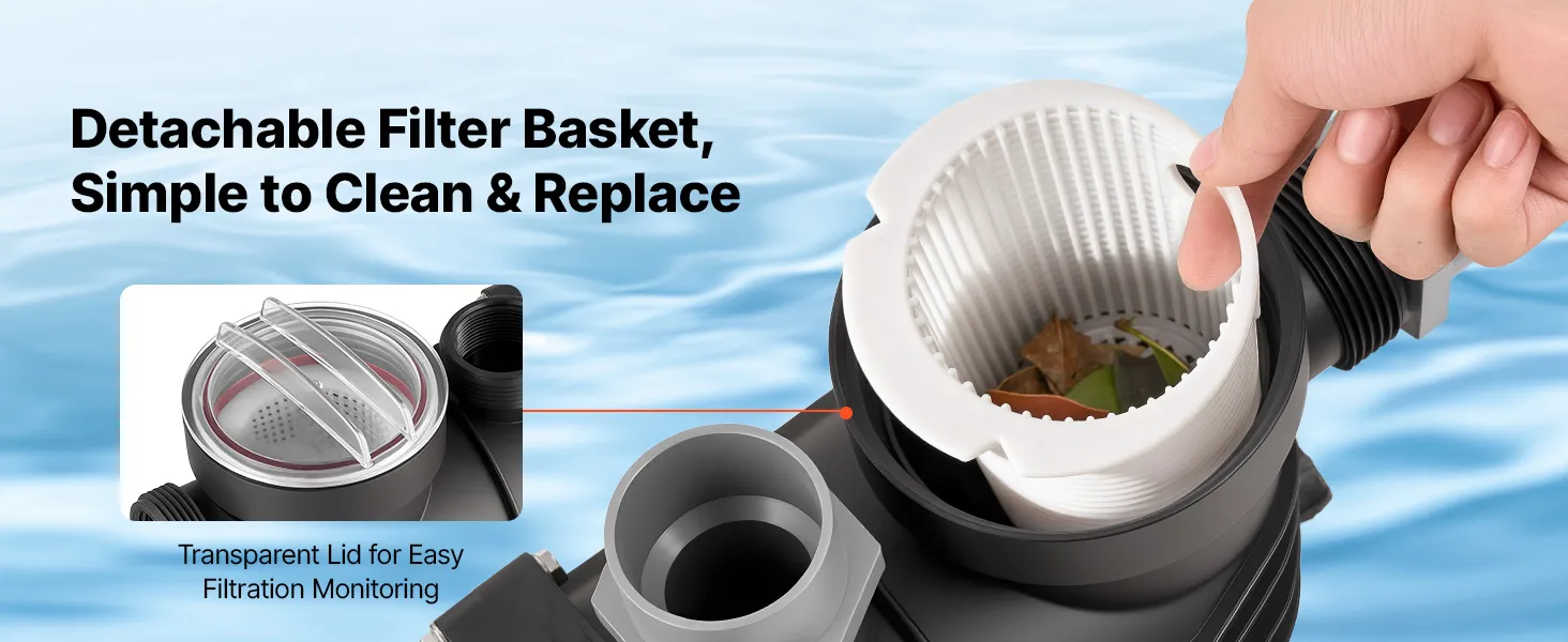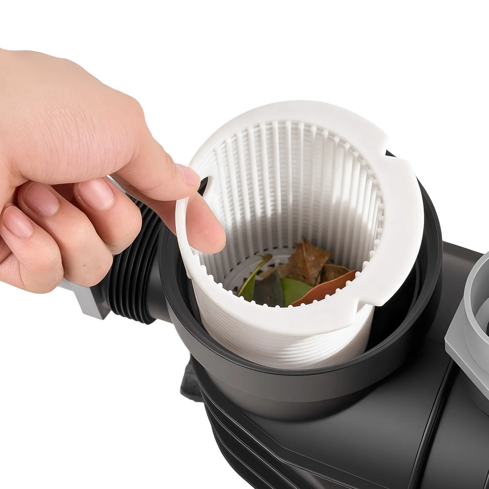 Our pool filter pump comes with a filter basket that pre-filters debris, helping guard both the pump and the filtration system for smooth operation.