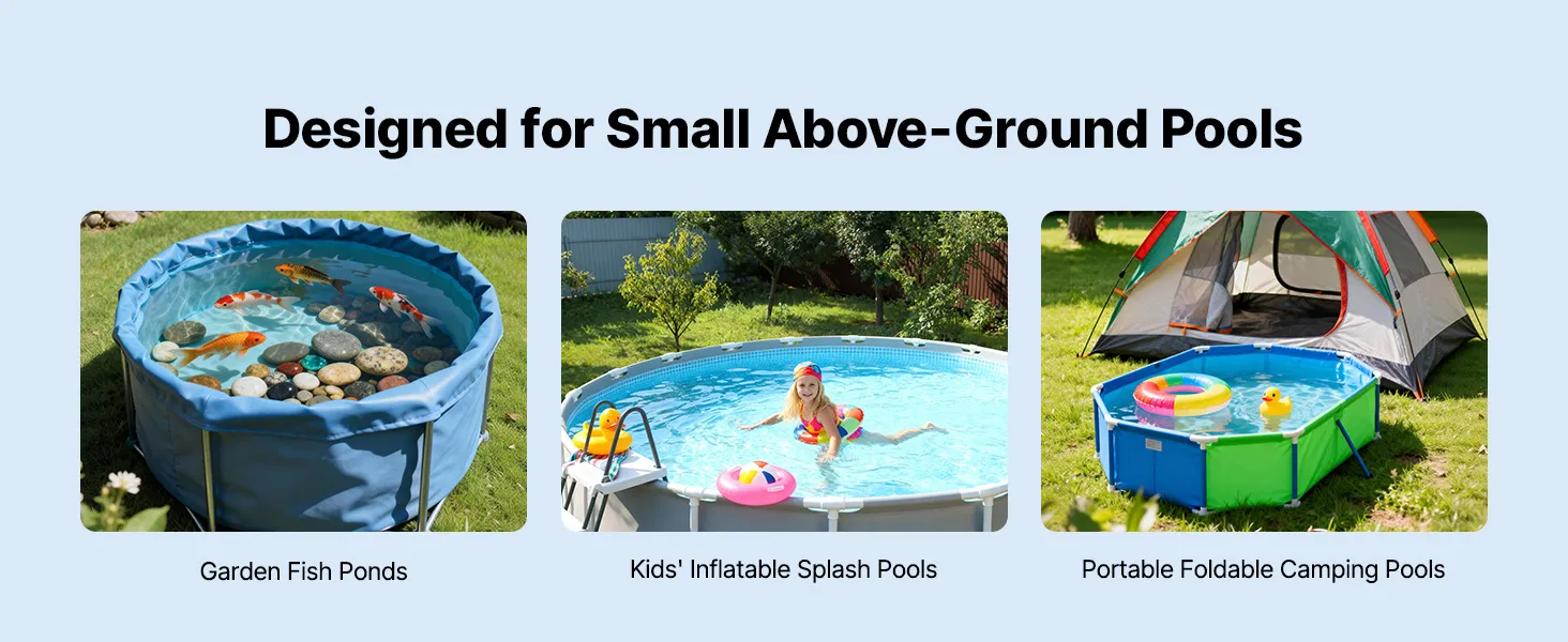 Equipped with a power cord and plug, this pool filter pump allows flexible placement on a flat, stable, and well-drained surface. No need to stay close to a fixed outlet.