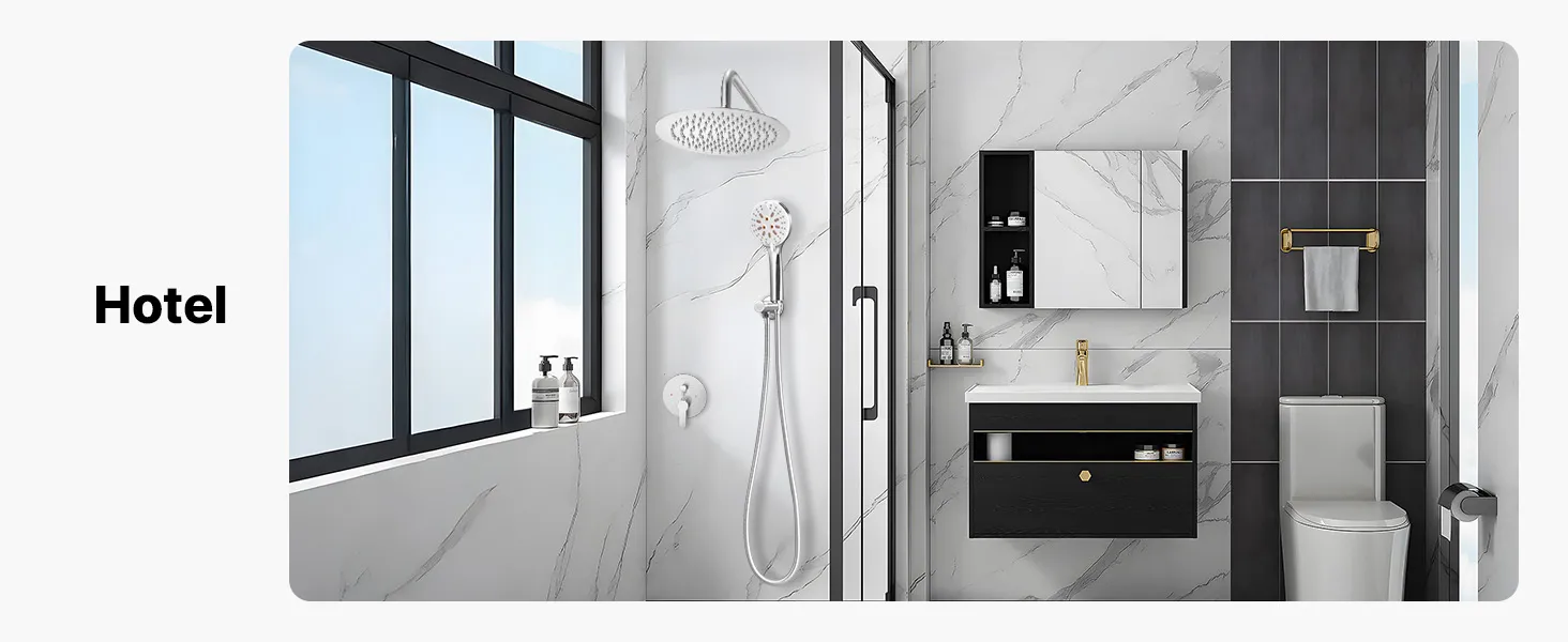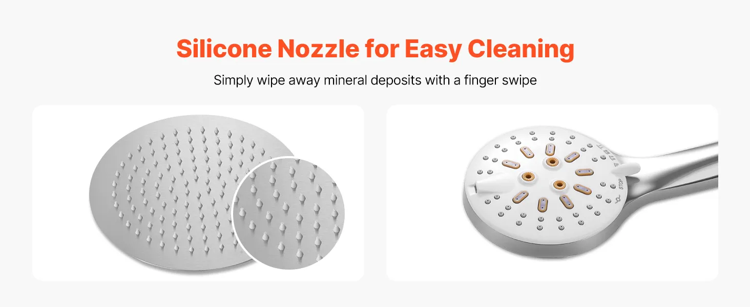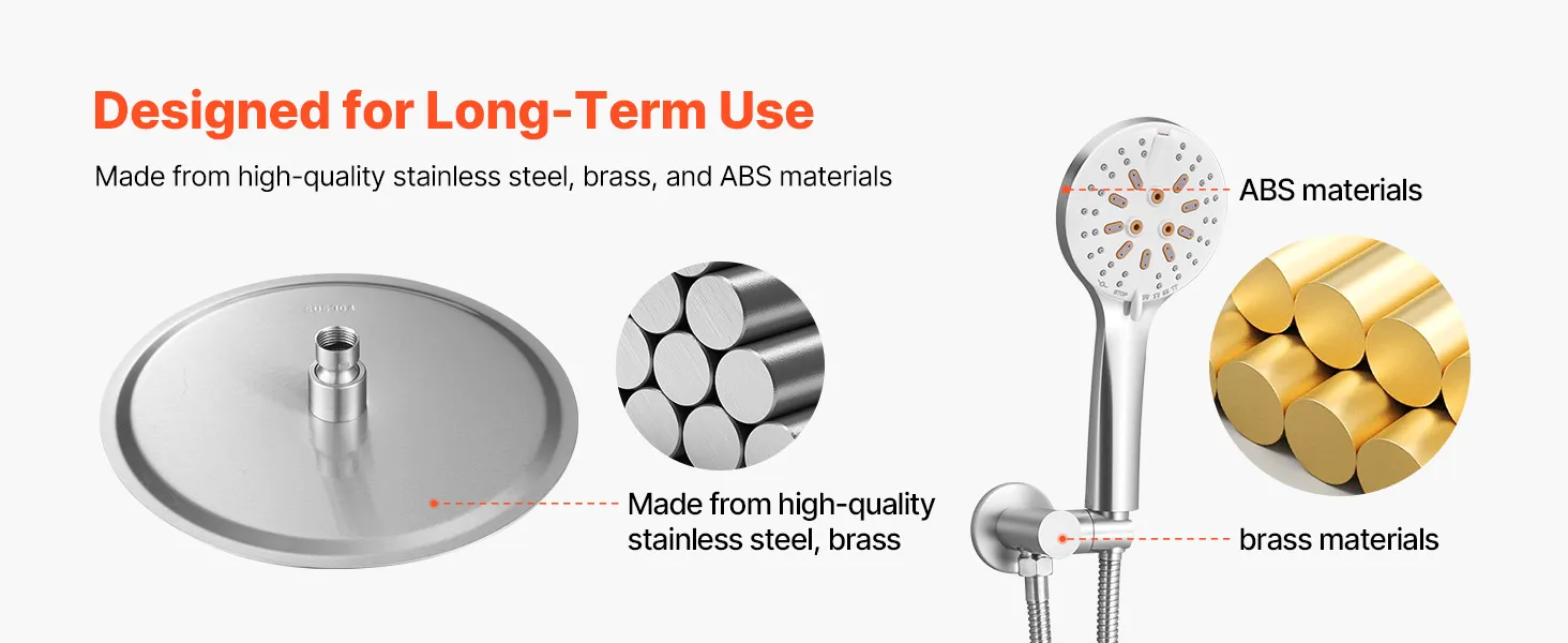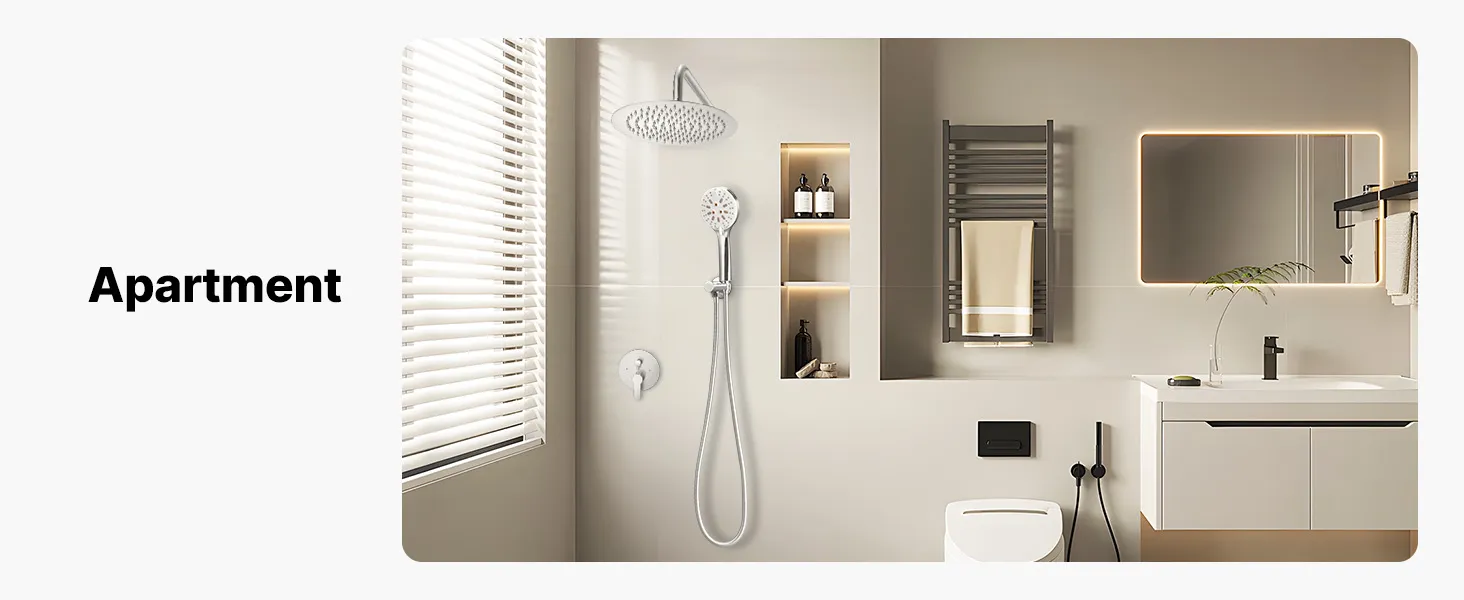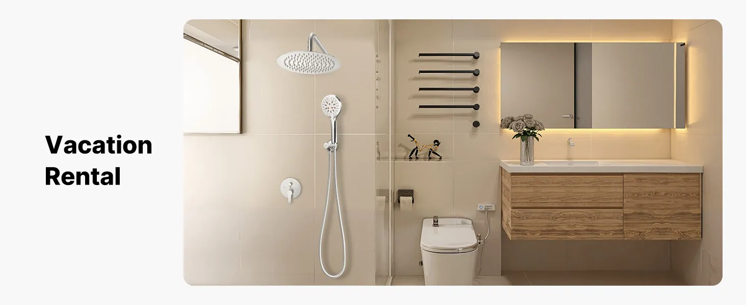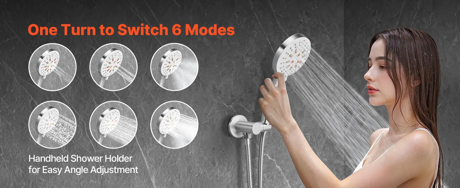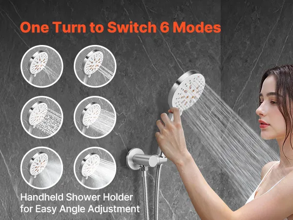Mūsu divfunkciju dušas sistēmas komplektā ir gan lietus ūdens padeves, gan rokas dušas iespējas, nodrošinot augsta spiediena ūdens plūsmu pat zema ūdens līmeņa apstākļos, radot atsvaidzinošu un relaksējošu dušas pieredzi.