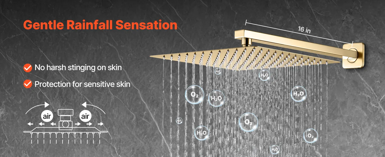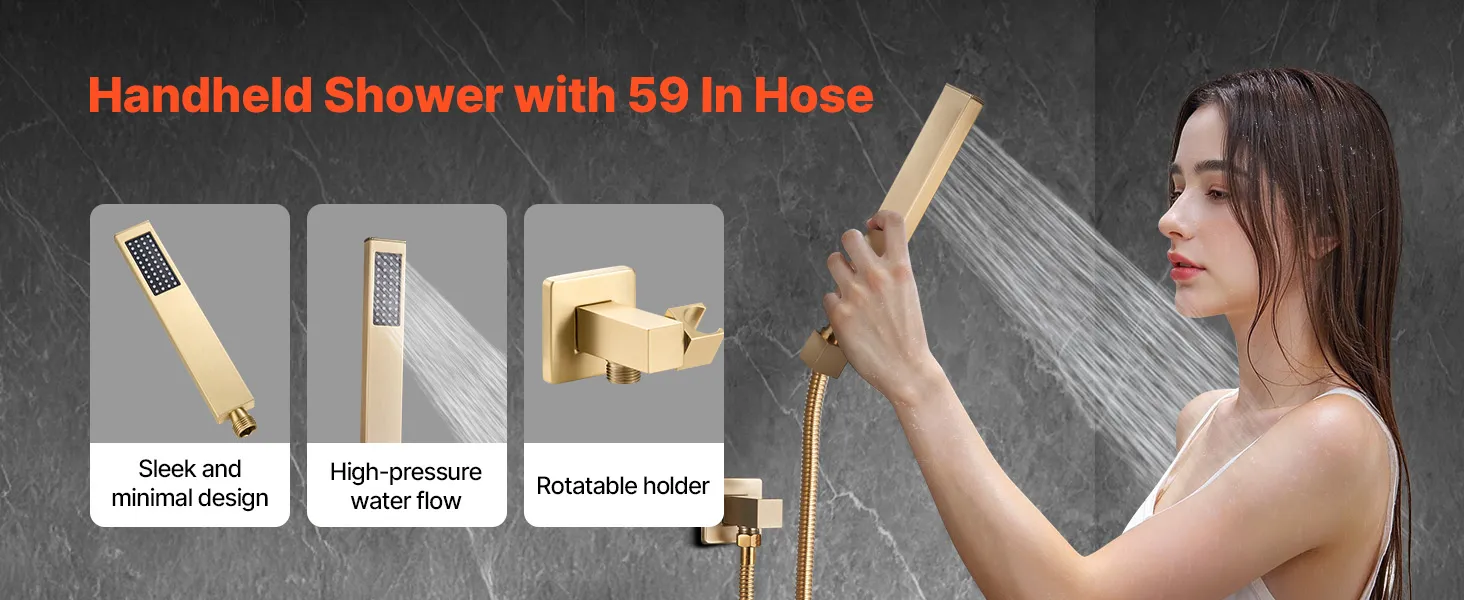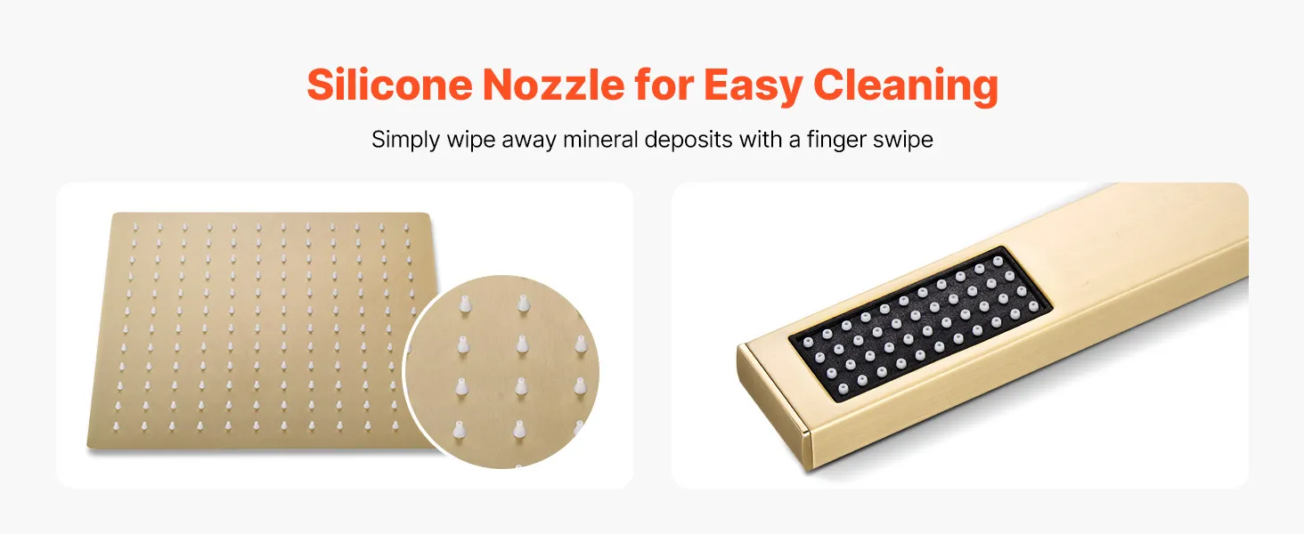 Mūsu divfunkciju dušas sistēmas komplektā ir gan lietus ūdens padeves, gan rokas dušas iespējas, nodrošinot augsta spiediena ūdens plūsmu pat zema ūdens līmeņa apstākļos, radot atsvaidzinošu un relaksējošu dušas pieredzi.