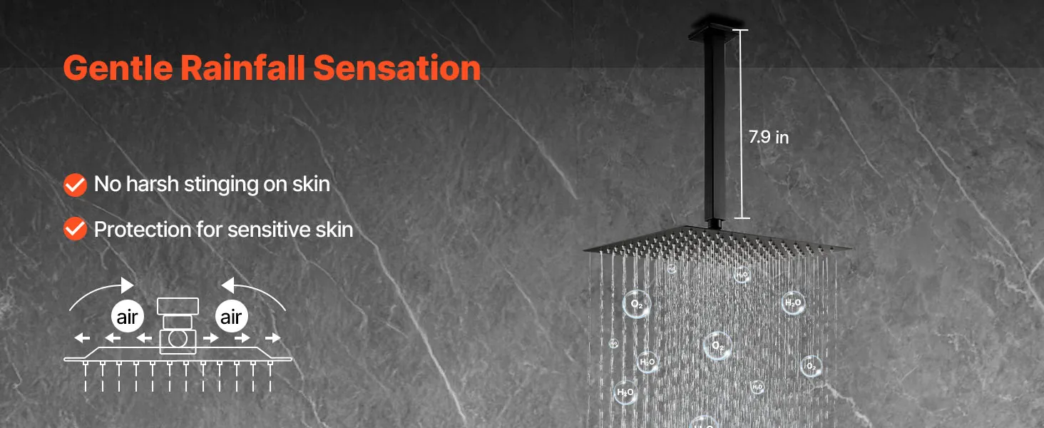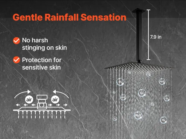 • Augstspiediena duša: mūsu divfunkciju dušas sistēma nodrošina greznu pieredzi ar gaisa iesmidzināšanas tehnoloģiju, garantējot augstu spiedienu pat pie zema ūdens līmeņa. Ietaupiet ūdeni ar 1,78 GPM plūsmas ātrumu, piedāvājot spa stila, relaksējošu dušu.