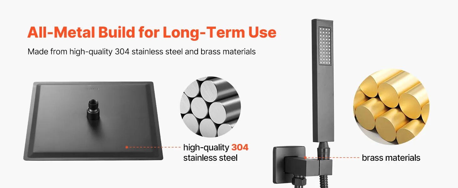 • Izturīga, pilnībā metāla konstrukcija: Šis dušas jaucējkrāns ir izgatavots no izturīga nerūsējošā tērauda, ​​misiņa un cinka sakausējuma, un tas neatstāj pirkstu nospiedumus un ūdens traipus. To ir viegli tīrīt, un tas piešķir jebkurai vannas istabai elegantu pieskārienu, ideāli piemērots dzīvokļiem, viesnīcām un viesu mājām.