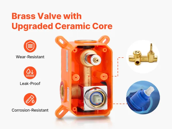 • Vienkārša temperatūras kontrole un aizsardzība pret apdegumiem: Augstas kvalitātes misiņa maisīšanas vārsts nodrošina ātru un vienmērīgu temperatūras regulēšanu, novēršot apdegumus. Keramikas vārsta serde nodrošina ilgstošu izturību, novēršot noplūdes vai bojājumus laika gaitā.