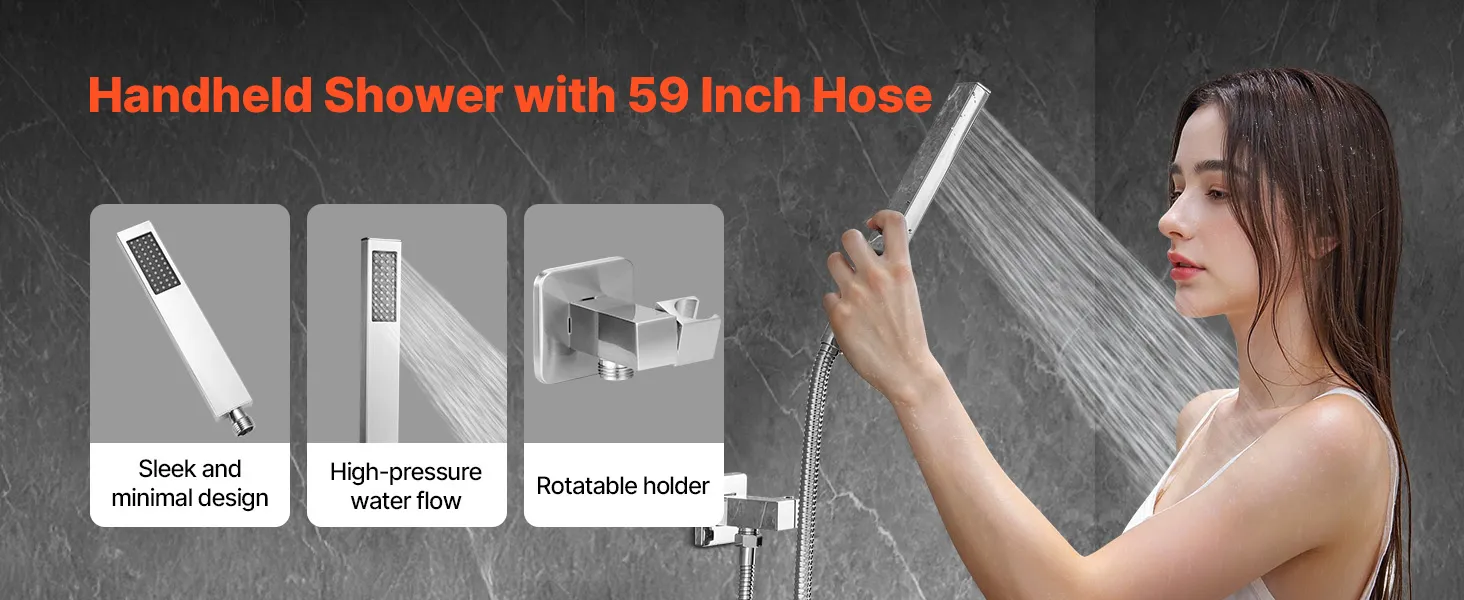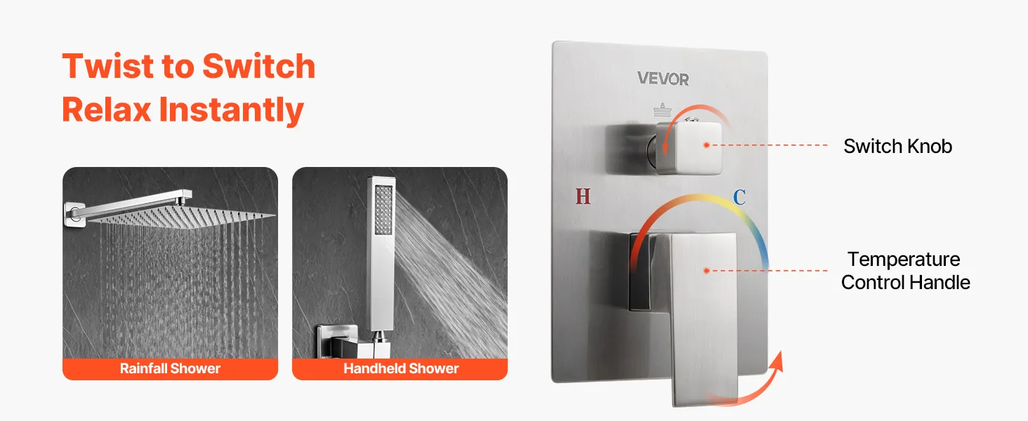 • Izturīga, pilnībā metāla konstrukcija: Šis dušas jaucējkrāns ir izgatavots no izturīga nerūsējošā tērauda, ​​misiņa un cinka sakausējuma, un tas neatstāj pirkstu nospiedumus un ūdens traipus. To ir viegli tīrīt, un tas piešķir jebkurai vannas istabai elegantu pieskārienu, ideāli piemērots dzīvokļiem, viesnīcām un viesu mājām.
