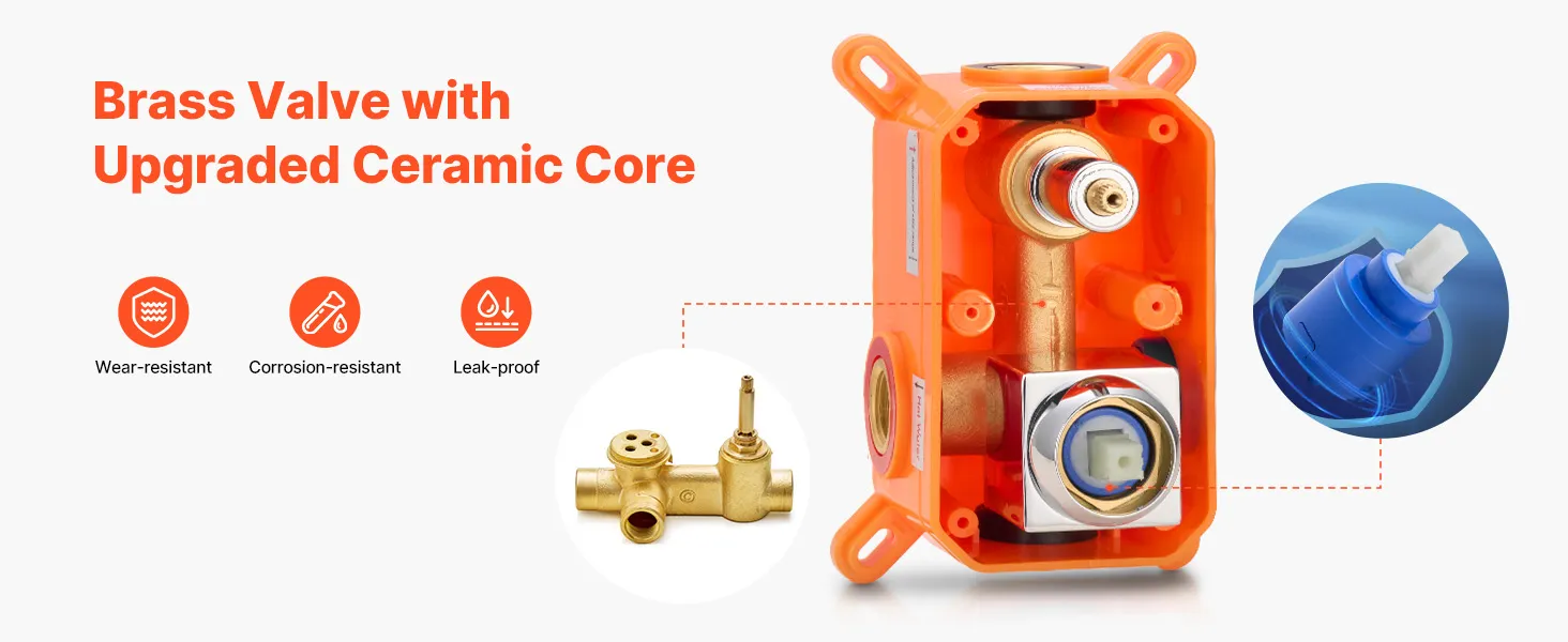 • Vienkārša temperatūras kontrole un aizsardzība pret apdegumiem: Augstas kvalitātes misiņa maisīšanas vārsts nodrošina ātru un vienmērīgu temperatūras regulēšanu, novēršot apdegumus. Keramikas vārsta serde nodrošina ilgstošu izturību, novēršot noplūdes vai bojājumus laika gaitā.