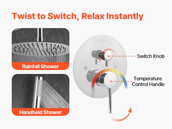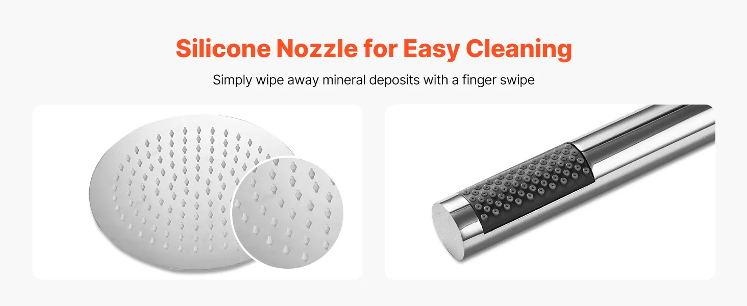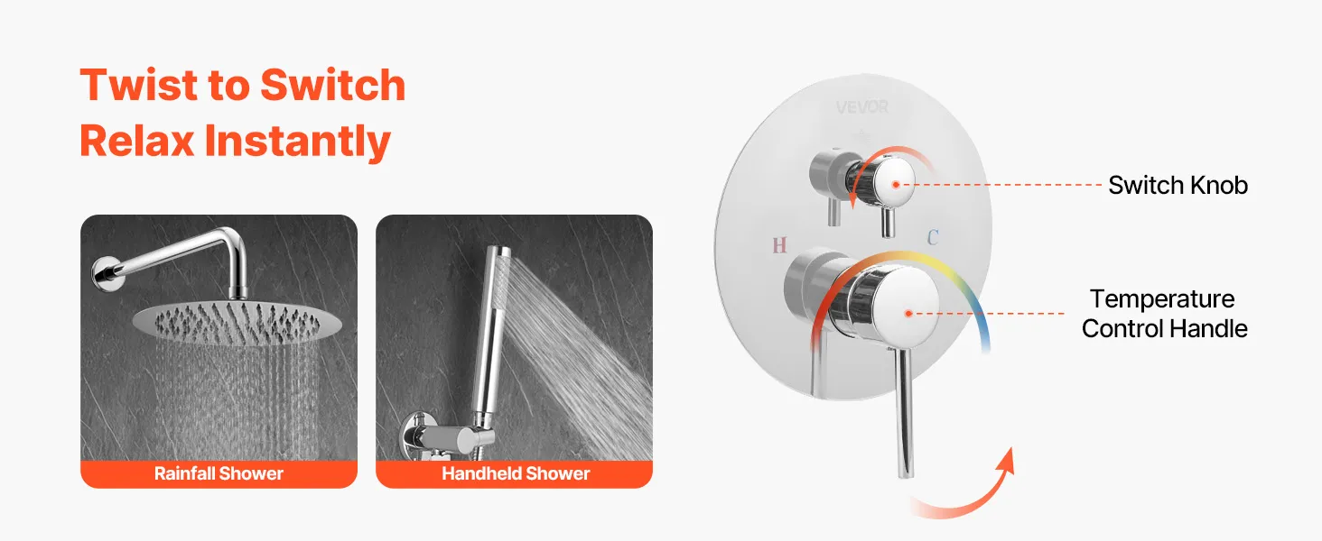 VEVOR lietus dušas jaucējkrānu komplekts ar 25.4cm galvu un rokas dušu, sienas stiprinājums, misiņa vārsts, sudraba hroms