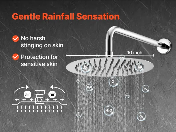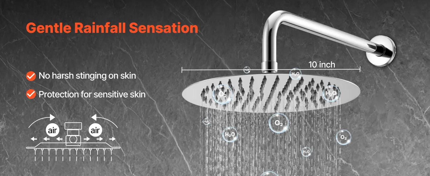 • Augstspiediena duša: mūsu divfunkciju dušas sistēma nodrošina greznu pieredzi ar gaisa iesmidzināšanas tehnoloģiju, garantējot augstu spiedienu pat pie zema ūdens līmeņa. Ietaupiet ūdeni ar 1,78 GPM plūsmas ātrumu, piedāvājot spa stila, relaksējošu dušu.