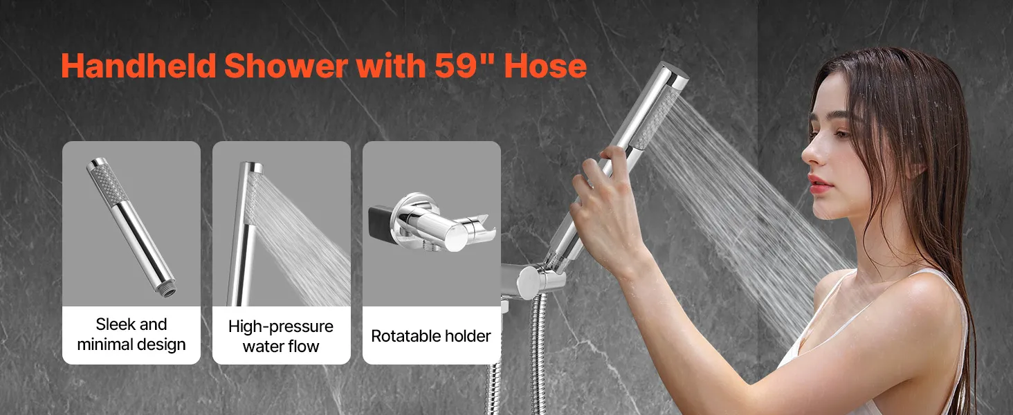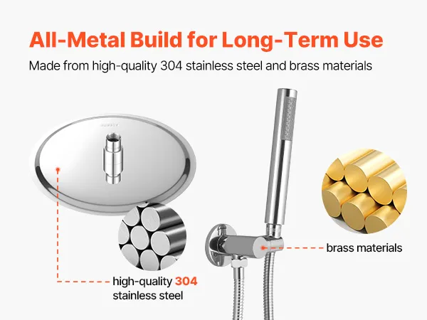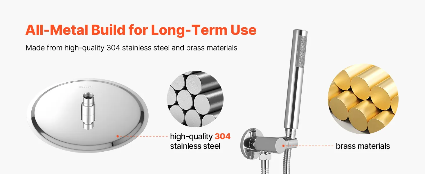 • Izturīga, pilnībā metāla konstrukcija: Šis dušas jaucējkrāns ir izgatavots no izturīga nerūsējošā tērauda, ​​misiņa un cinka sakausējuma, un tas neatstāj pirkstu nospiedumus un ūdens traipus. To ir viegli tīrīt, un tas piešķir jebkurai vannas istabai elegantu pieskārienu, ideāli piemērots dzīvokļiem, viesnīcām un viesu mājām.