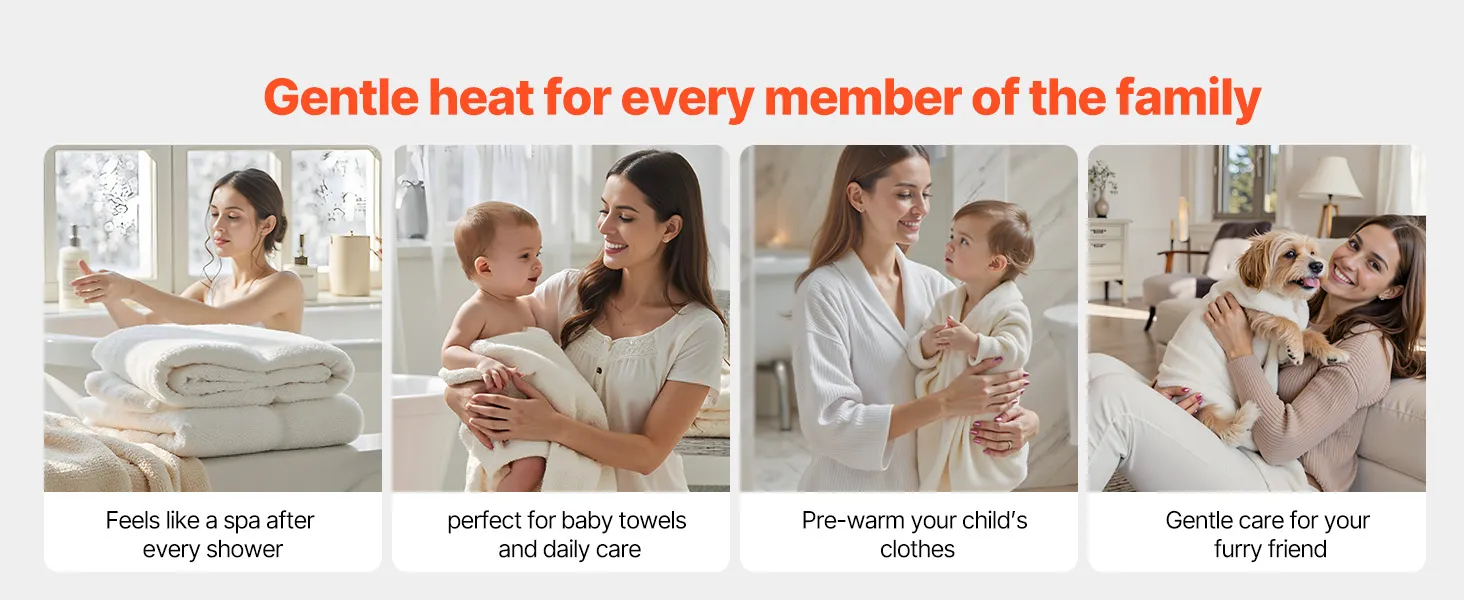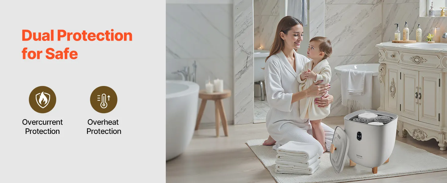 Experience fast heating and smart security with our towel warmer bucket—designed to deliver cozy, warm towels for the whole family. Its large capacity heats multiple towels at once, while V0 flame-retardant materials ensure peace of mind.