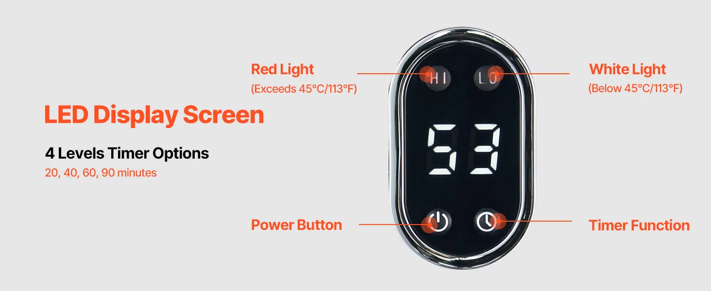 Customize your warmth with simple preset timer options. Whether it’s a chilly winter day or humid season, experience warmth exactly when you need it.
