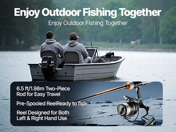 This 6.5ft/2m, 2-piece fishing rod and reel combo is designed for beginners. It comes with pre-spooled line and is easily usable by left- and right-handed anglers. Made with fiberglass and carbon, it offers durability and comfort for both freshwater and saltwater fishing.