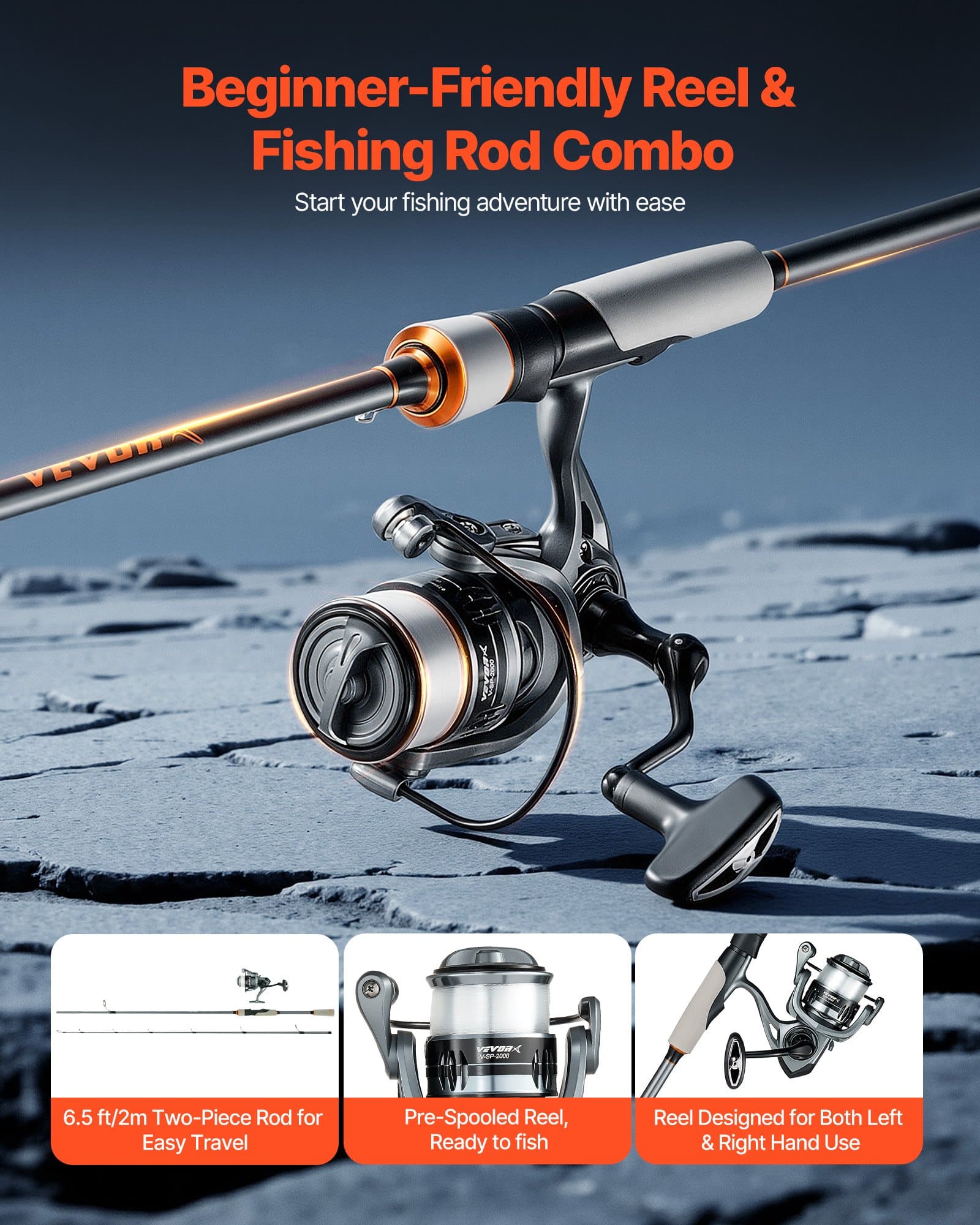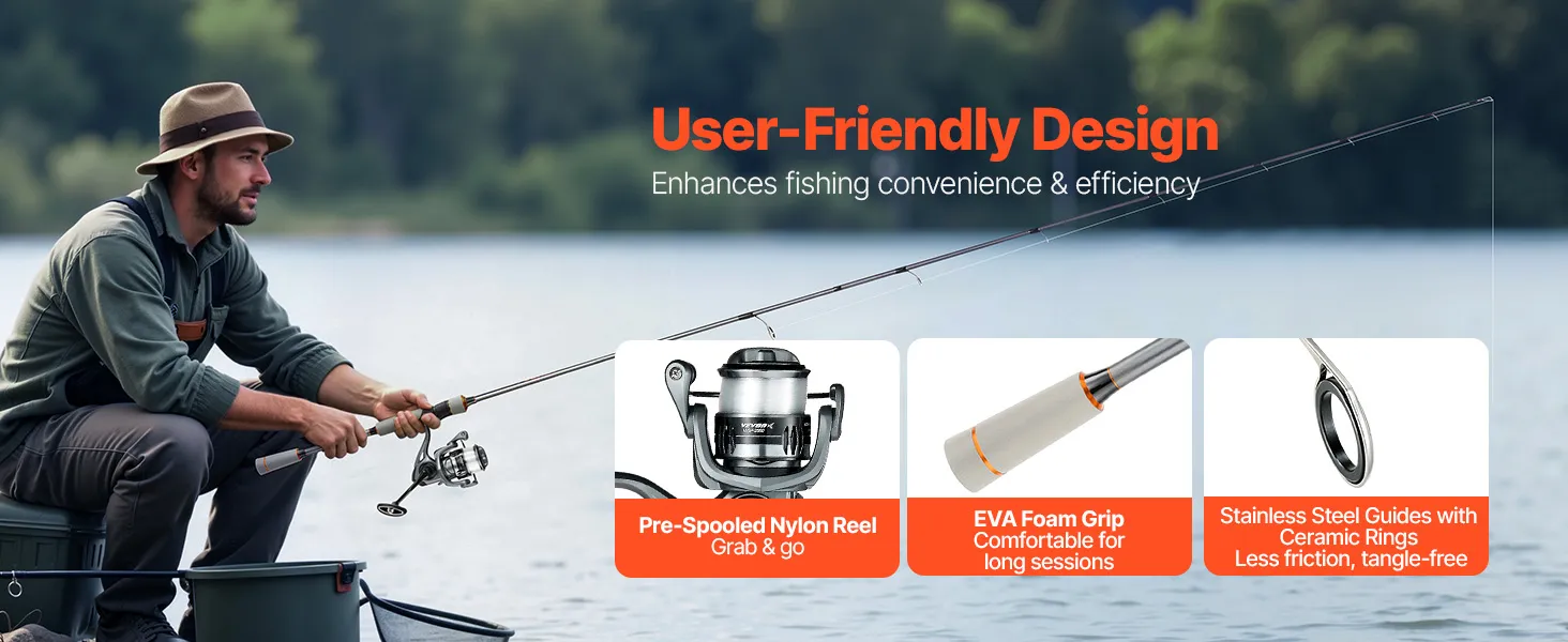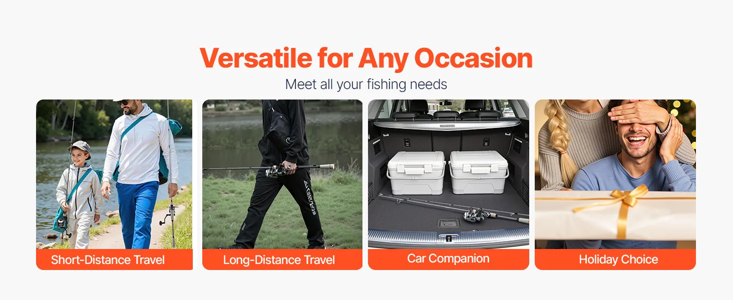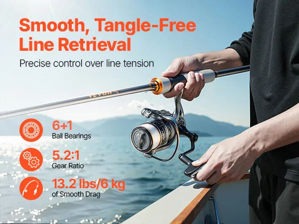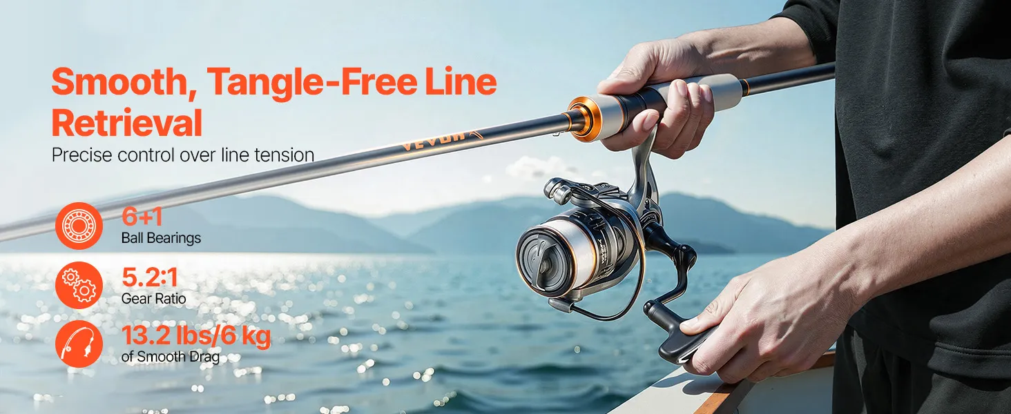 With its versatile design, this VEVOR spinning reel fishing pole is ideal for any situation. It's compact enough to carry on short trips, fits in your travel case for long vacations, and can be stored in your car for emergency fishing outings. A great choice to share your passion for fishing.