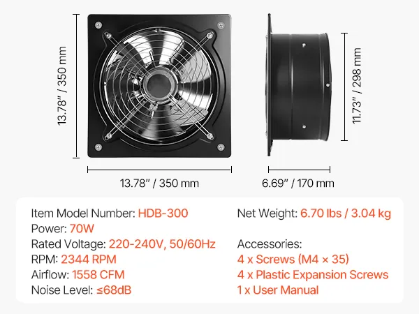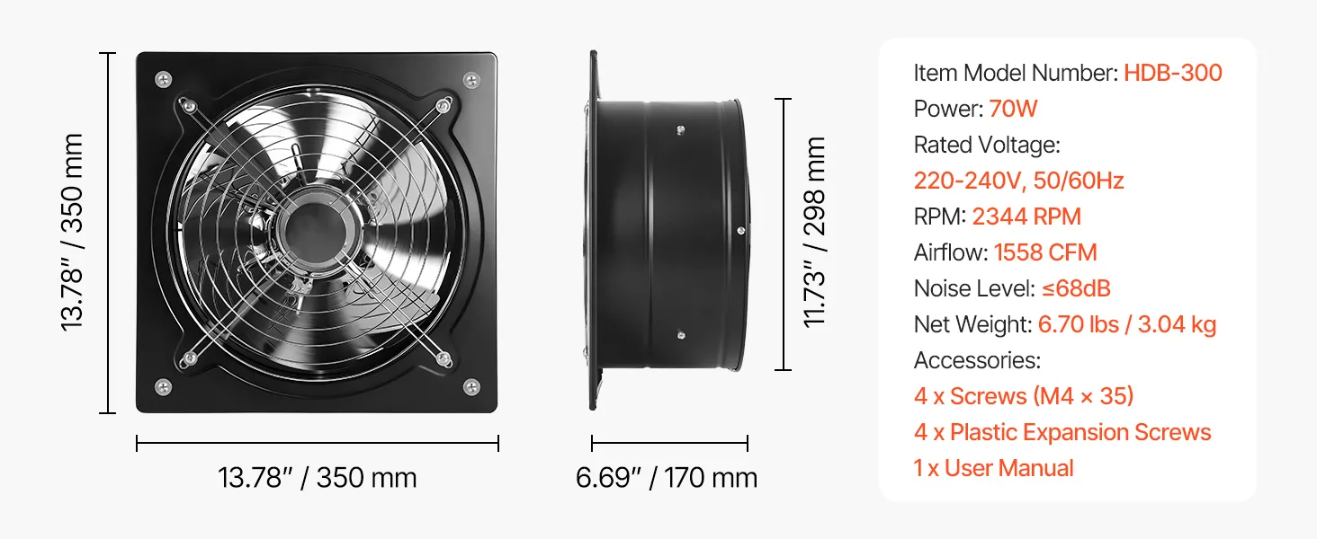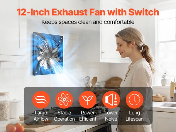• High Airflow Performance: This 30.5 cm / 12-inch exhaust fan delivers strong airflow for fast smoke and air circulation, keeping your kitchen or workshop fresh and comfortable during daily use