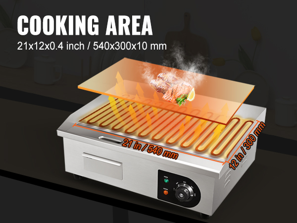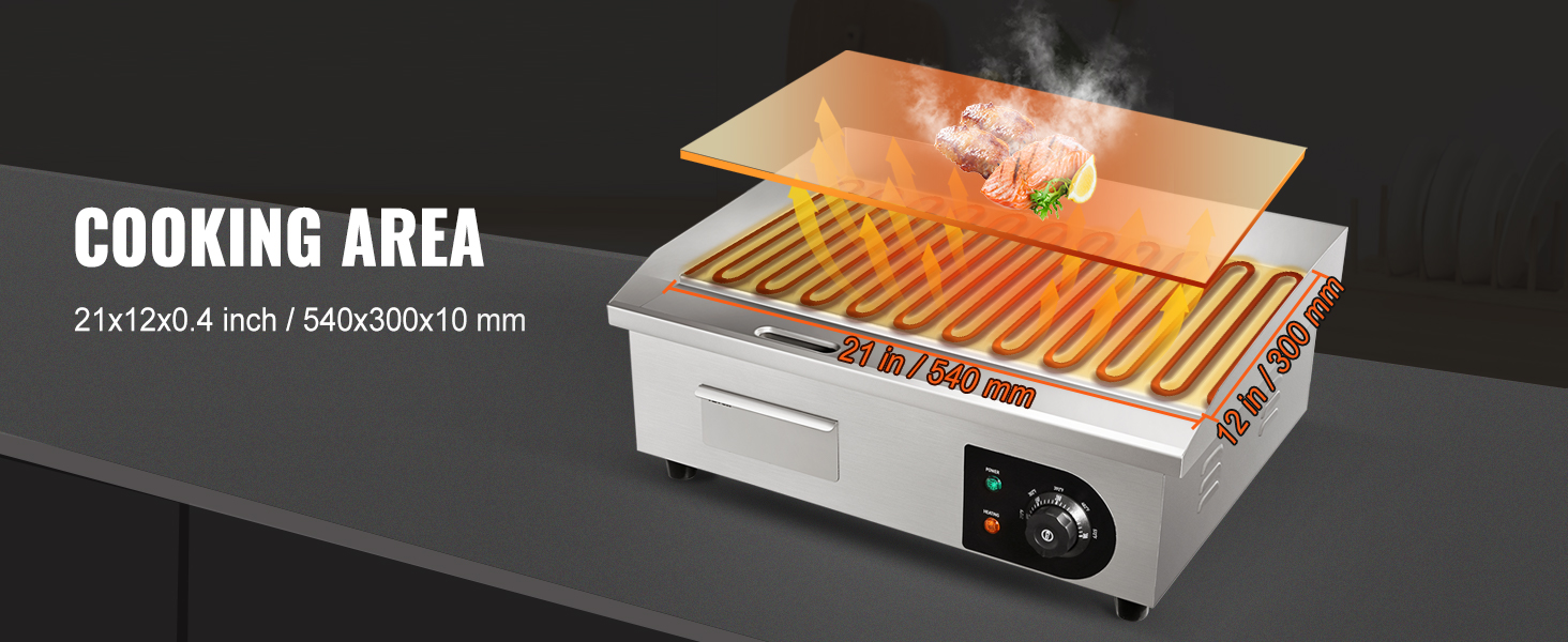 VEVOR 3000W 53.3 cm Commercial Electric Countertop Griddle Flat Top Grill Hot Plate
