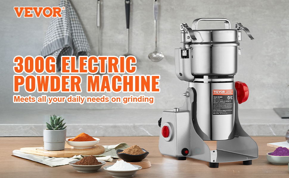 VEVOR 300g Elektriskais Garšvielu un Graudu Malējs, 1500W Nerūsējošā Tērauda Dzirnavas, Šūpojošs Dizains