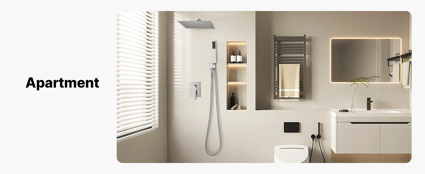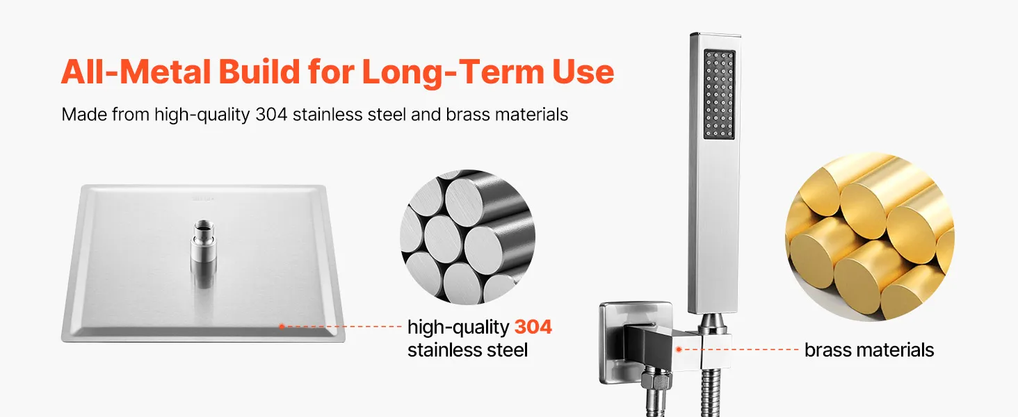 • Izturīga, pilnībā metāla konstrukcija: Šis dušas jaucējkrāns ir izgatavots no izturīga nerūsējošā tērauda, ​​misiņa un cinka sakausējuma, un tas neatstāj pirkstu nospiedumus un ūdens traipus. To ir viegli tīrīt, un tas piešķir jebkurai vannas istabai elegantu pieskārienu, ideāli piemērots dzīvokļiem, viesnīcām un viesu mājām.
