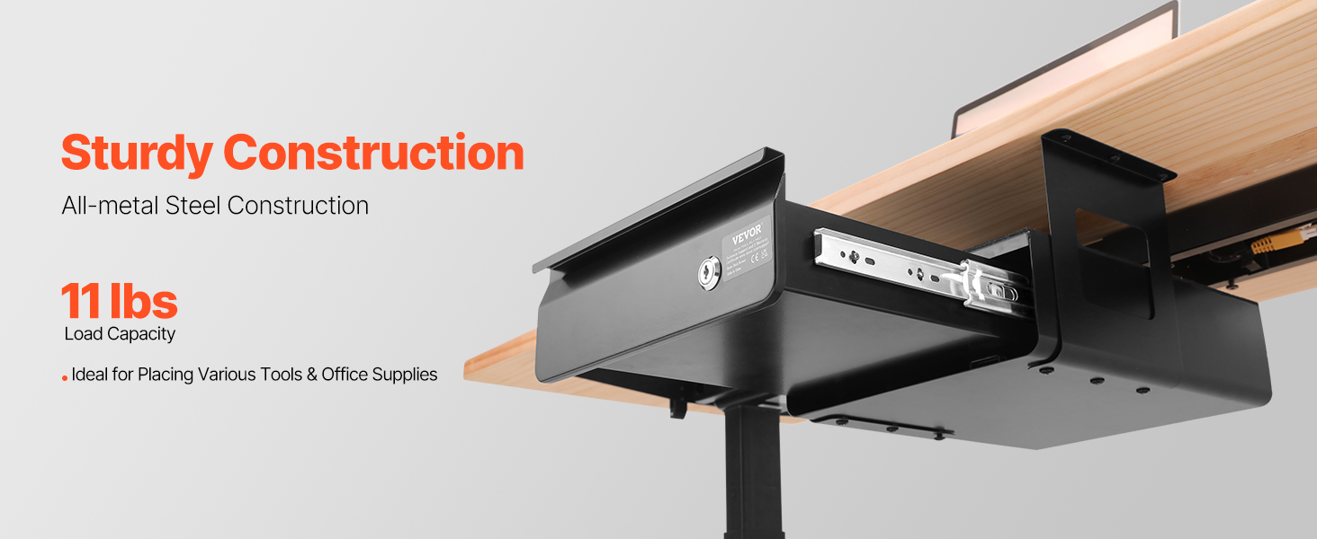 Ar 11 mārciņu (apmēram 4,3 kg) celtspēju šī zemgalda atvilktne nodrošina ideālu uzglabāšanas risinājumu jūsu biroja piederumu sakārtošanai. Slēdzamais dizains nodrošina jūsu personīgo mantu drošību. Neatkarīgi no tā, vai atrodaties mājās vai birojā, uzturiet kārtīgu darba vietu, vienlaikus kārtojot savas mantas.