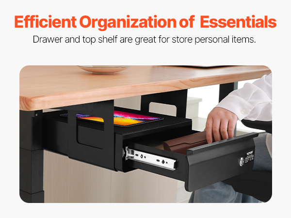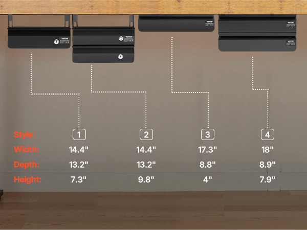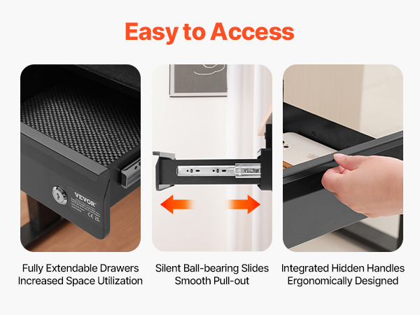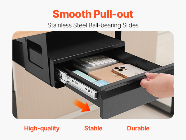 VEVOR 13" Wide Under Desk Drawer Slide Out, Under Desk Mounted Pull-out Drawer Attachment, Hidden Desktop Storage Organizer, Lockable Under Table Pencil Drawer for Sit Stand Workstation, 14x13x7 in