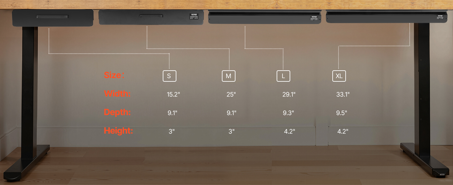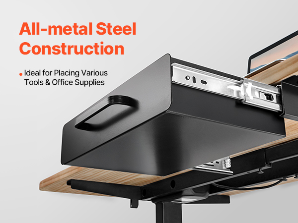 VEVOR 13" Wide Under Desk Drawer Slide Out, Under Desk Mounted Pull-out Drawer Attachment, Hidden Desktop Storage Organizer, Under Table Pencil Drawer for office Home Sit Stand Workstation, 15x9x3 in