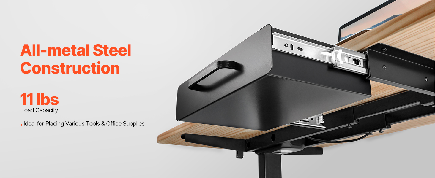 Šī zemgalda atvilktne var izturēt līdz 11 mārciņām (apmēram 4,5 kg), nodrošinot vērtīgu papildu vietu jūsu rakstāmgaldam. Uzturiet savu darba vietu sakārtotu un bez liekām pūlēm, lai jūs varētu koncentrēties uz savu darbu bez uzmanības novēršanas.