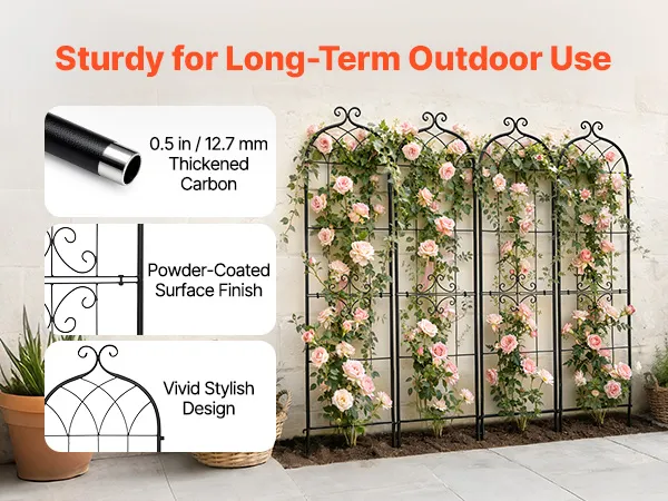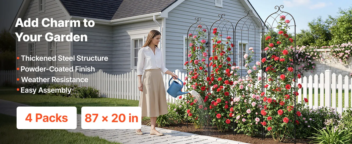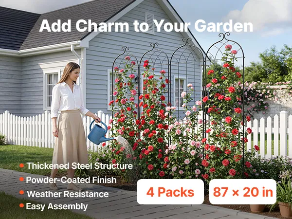 Say goodbye to a cluttered garden. This 4-pack steel rose trellis adds structure and charm with its soft arched design that blends seamlessly into any landscape. It provides generous vertical support for flowers, vines, and vegetables to climb and grow.