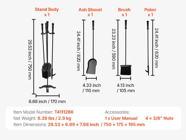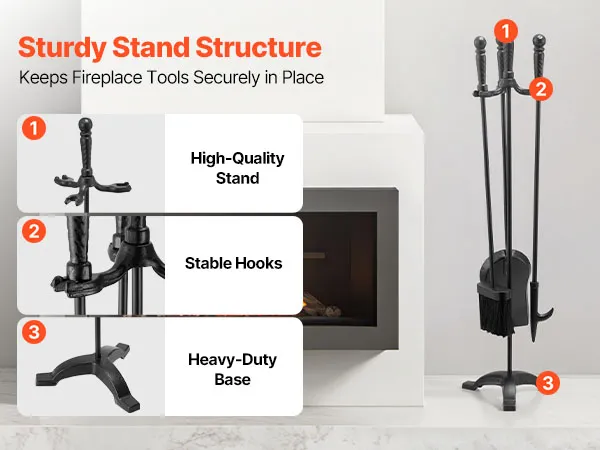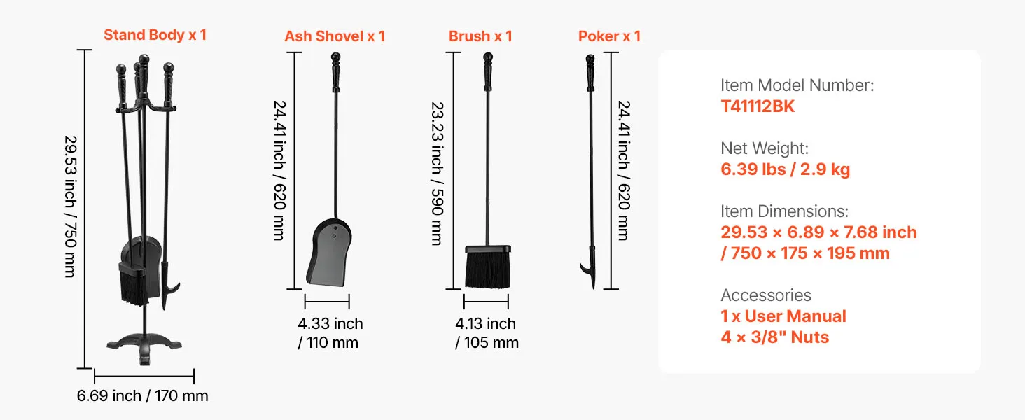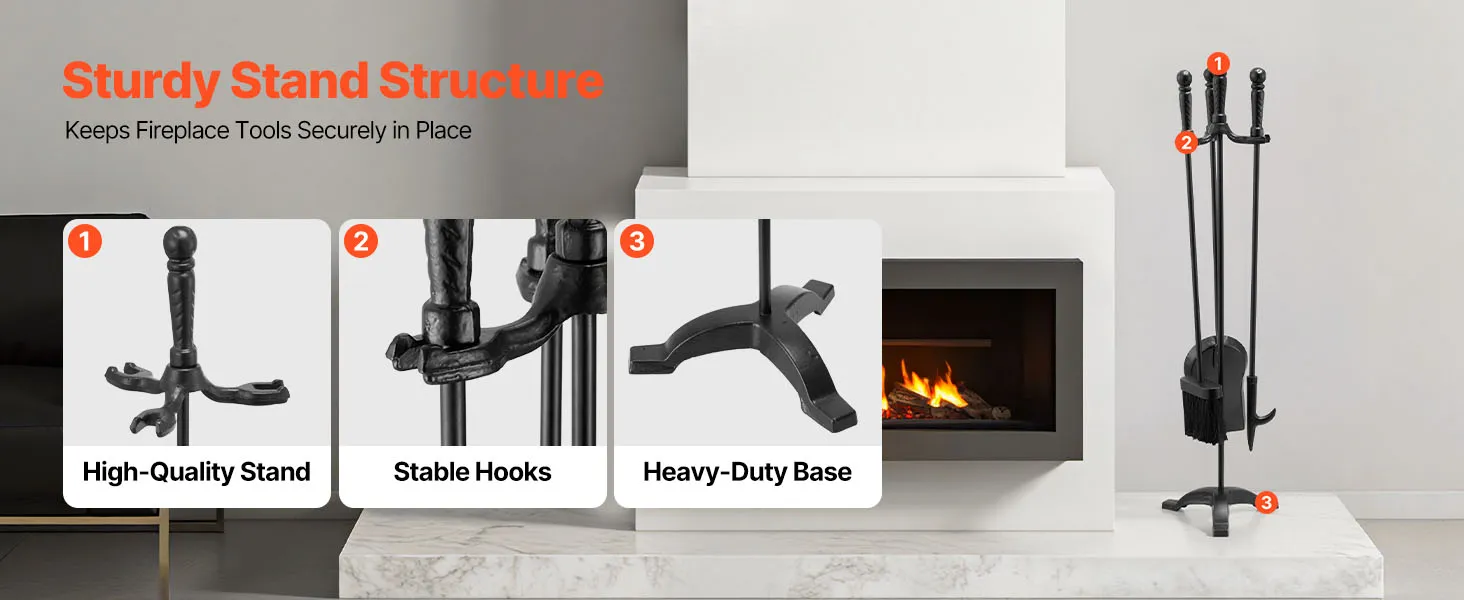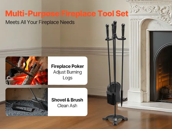 • Easy Installation: Designed with simplicity and complete accessories, the fireplace tools set indoor is quick to assemble without complex tools or professional skills needed. Follow a few simple steps to enjoy a warm, cozy fireplace experience