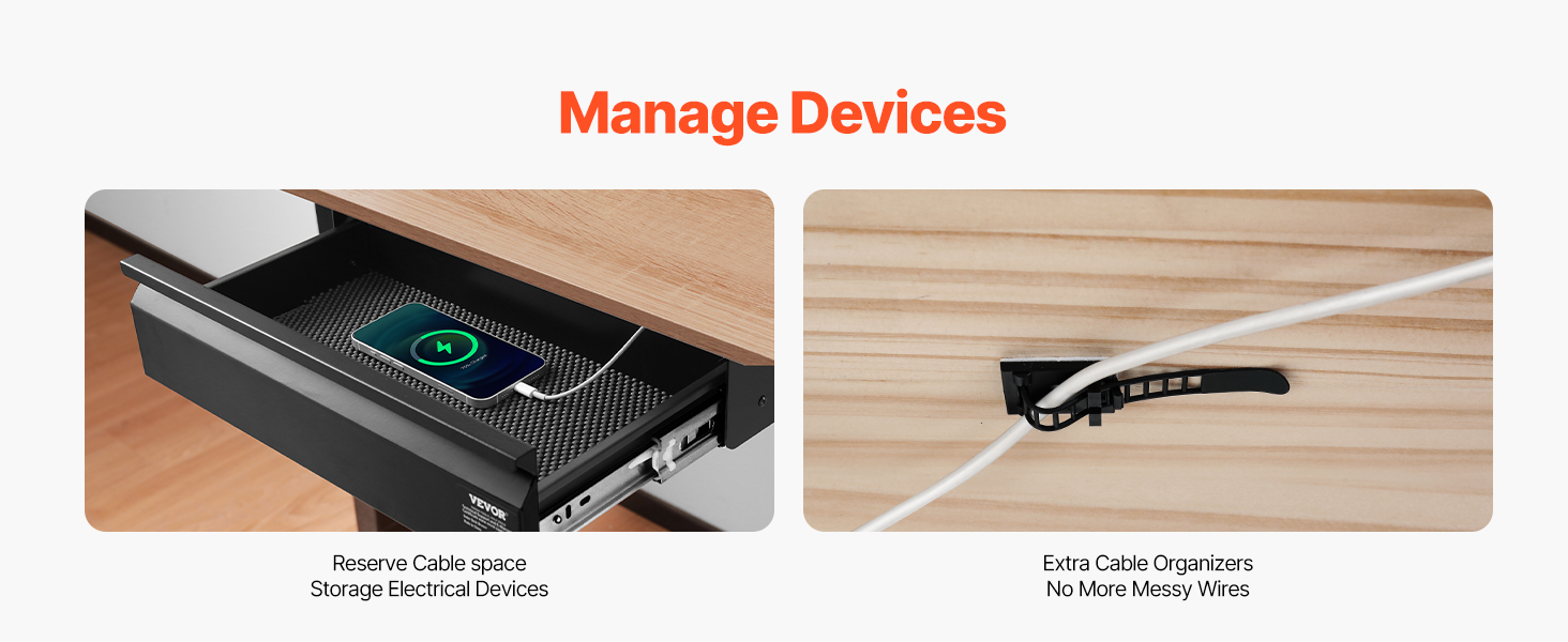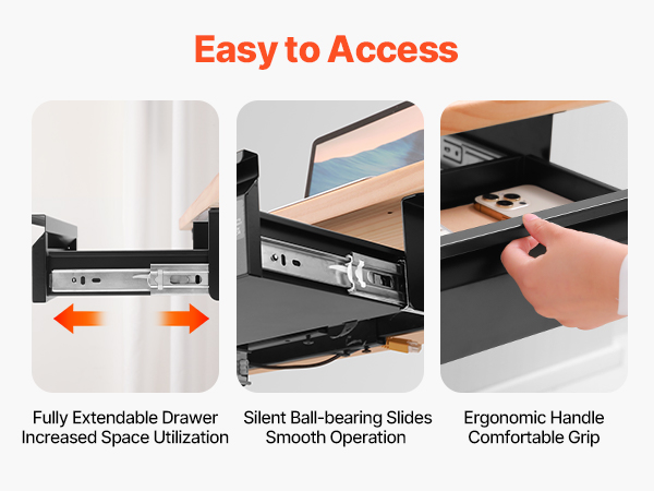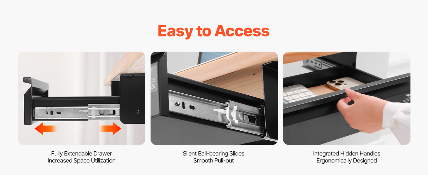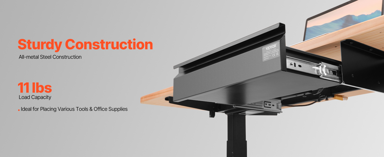 Zem rakstāmgalda esošā atvilktne nodrošina papildu 11 mārciņu (apmēram 4,5 kg) uzglabāšanas ietilpību, palīdzot uzturēt darba vietu kārtīgu un organizētu. Atvadieties no nekārtīgām virsmām un izbaudiet organizētāku un efektīvāku darba vidi.