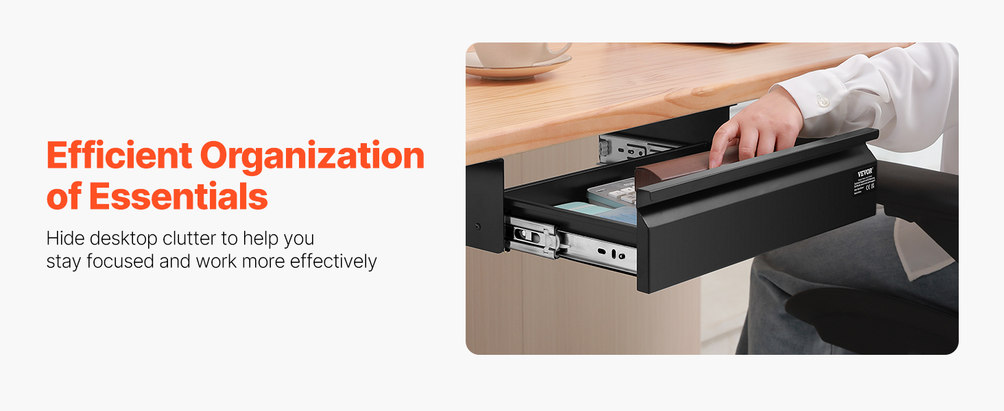 VEVOR 16" Wide Under Desk Drawer Slide Out, Under Desk Mounted Pull-out Drawer Attachment, Hidden Desktop Storage Organizer, Under Table Pencil Drawer for office Home Sit Stand Workstation, 17x9x4 in