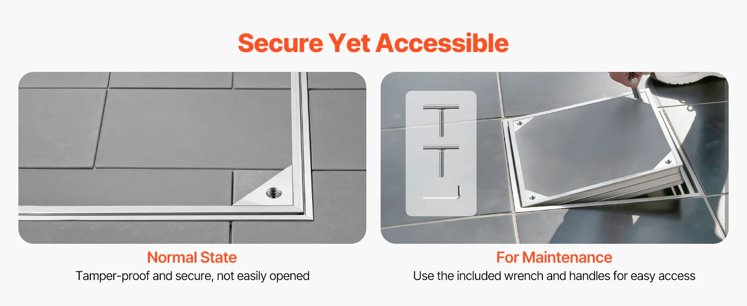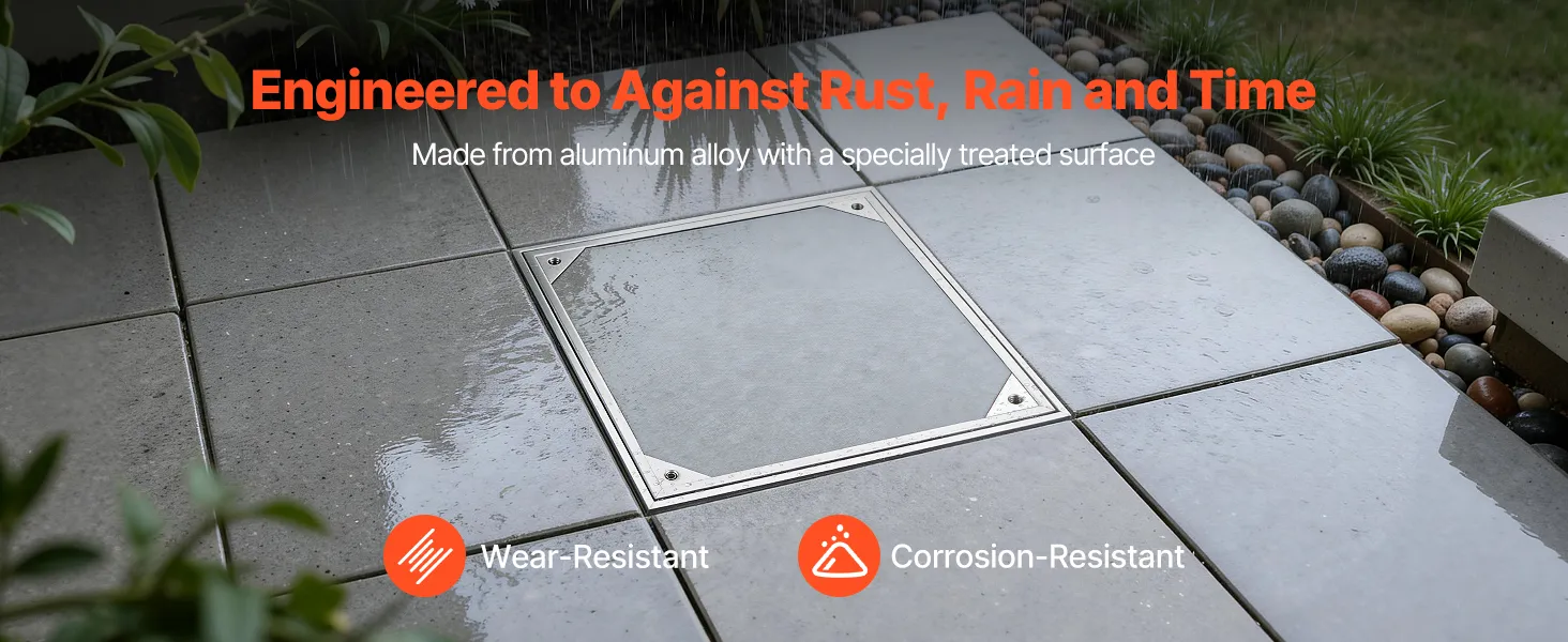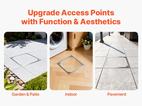 Ideal for patios, indoor floors, and pavements, the invisible recessed design sits flush with nearby surfaces, keeping inspection access convenient and clean-looking.