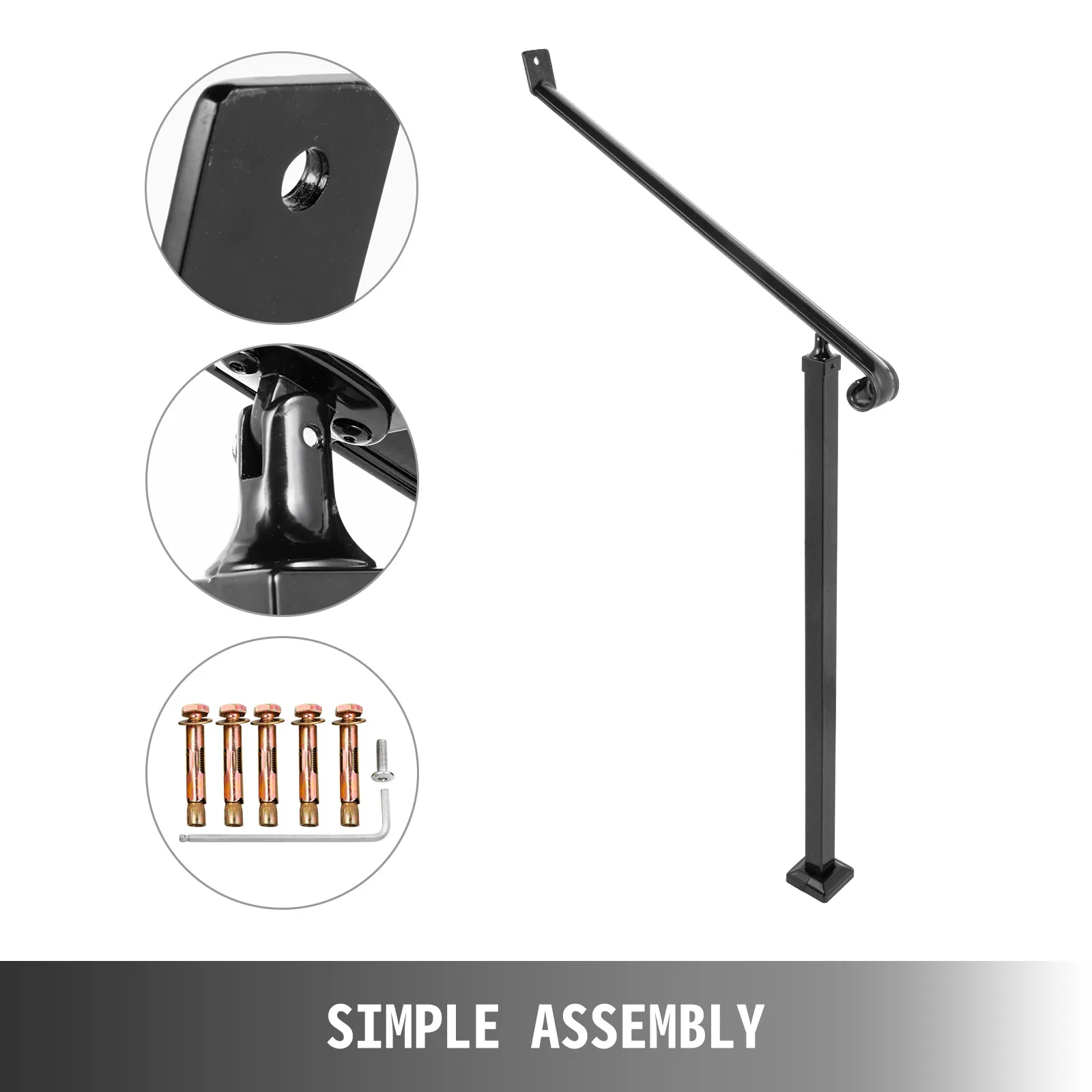VEVOR Kalta Dzelzs Margas 2-3 Pakāpieniem, 76.5 cm (30.1") Garums un 159.6 cm (62.8") Augstums, Āra Kāpņu Margas ar Skrūvējamu Stabu