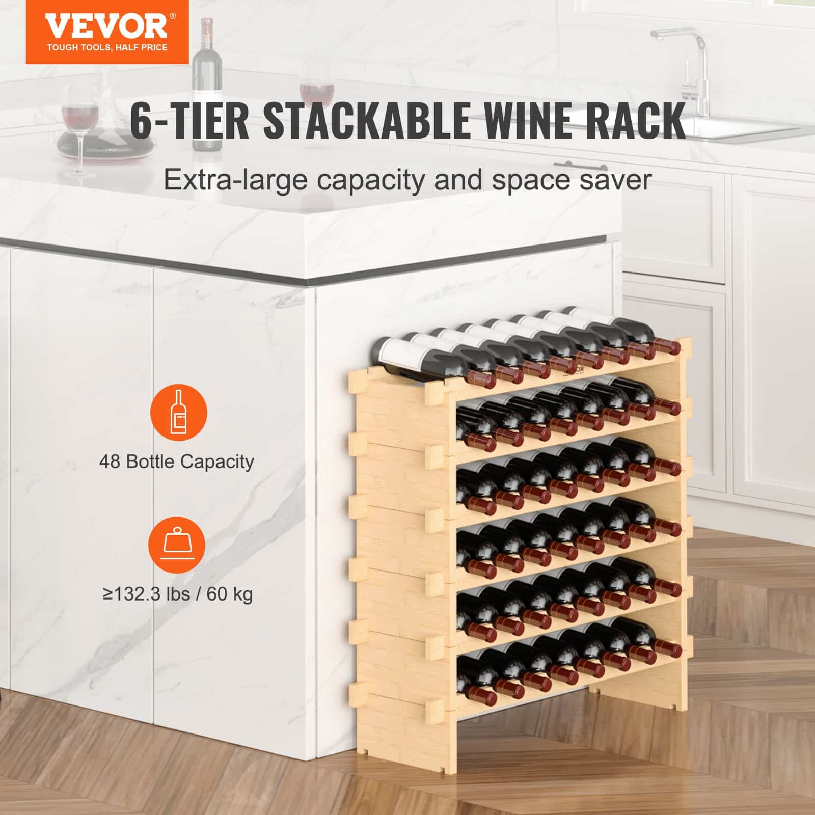 VEVOR Bambusa Vīna Plaukts - 48 Pudeles, 6 Līmeņu Modulāra Plaukta Sistēma, Aptuveni 76 cm x 25 cm x 77 cm Virtuvei, Ēdamistabai vai Vīna Pagrabam