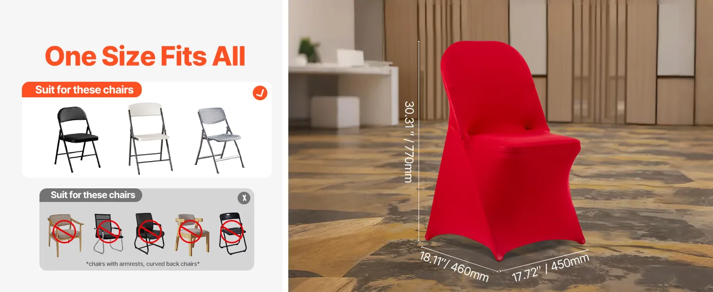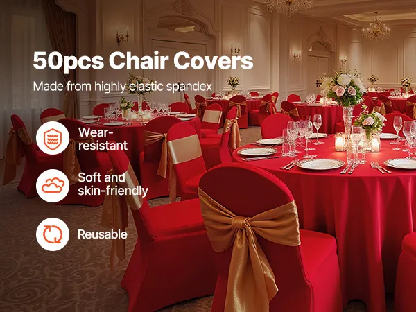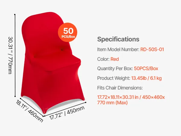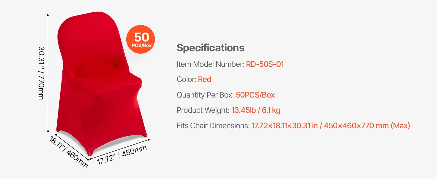 VEVOR 50 Pcs Red Chair Covers, Polyester Spandex Chair Cover, Stretch Slipcovers for Wedding Party Dining Banquet Flat-Front Chair Covers, Fits Chair Measures up to 17.72 x 18.11 x 30.31 inch